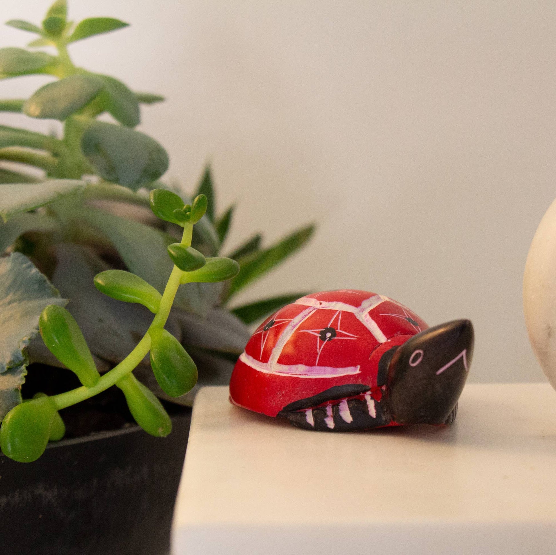 Carved from soapstone in Western Kenya, these turtles are like none found in nature but seeing one of these with its brilliant colors and whimsical shape can surely act as a close substitute to seeing one in the wild. Colors will vary. Each turtle is approximately 3.5 inches in length. Sold individually.