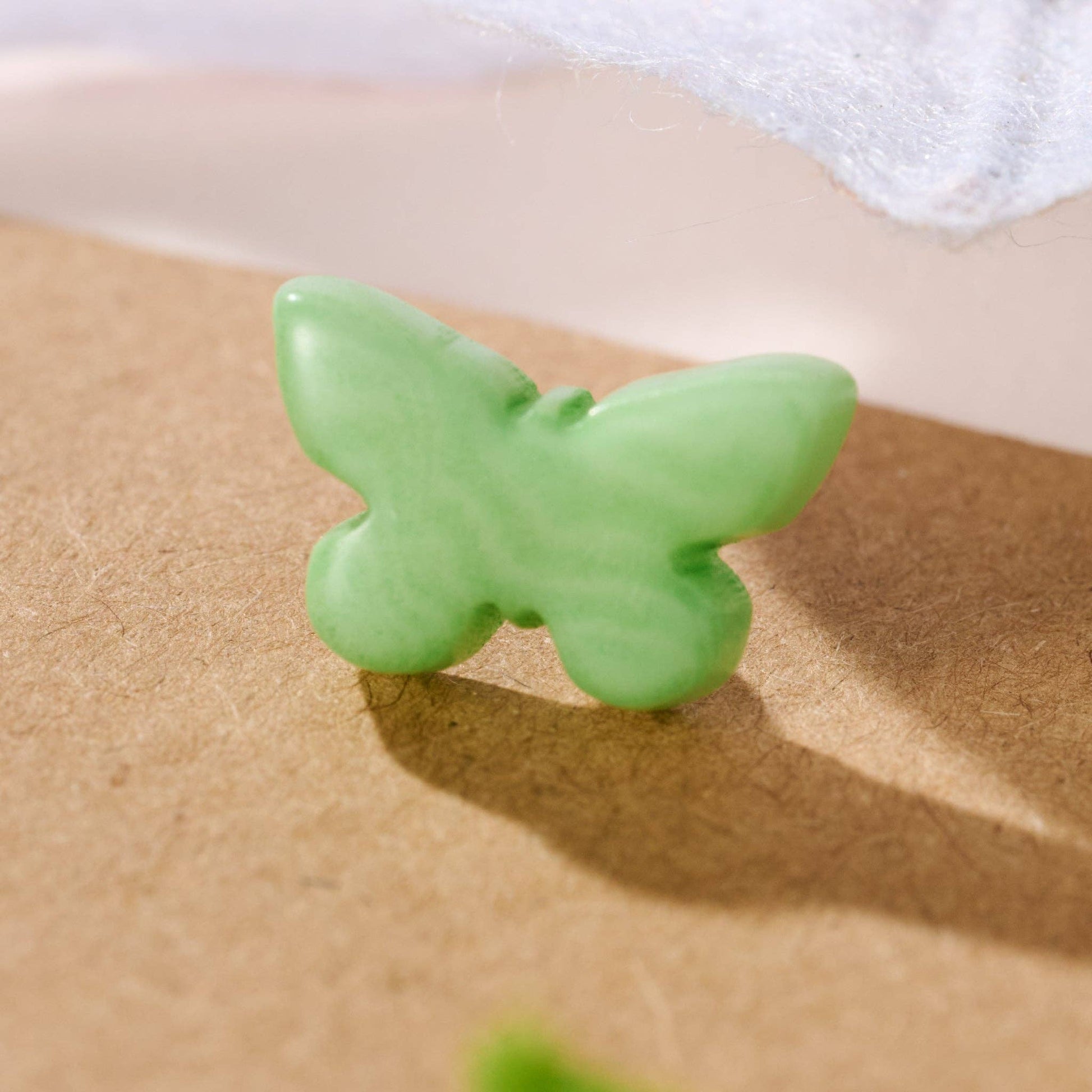 Add a touch of whimsy to any outfit with these petite earrings. Made from sustainable tagua, these sweet moss-colored post earrings feature a charming butterfly design. Stainless steel posts ensure comfortable wear. Wear with pride while feeling good about your eco-friendly style!