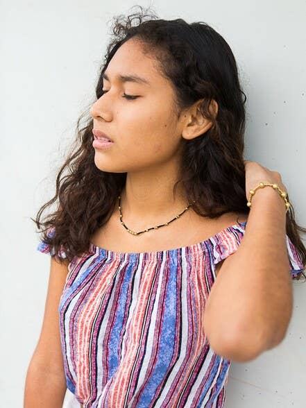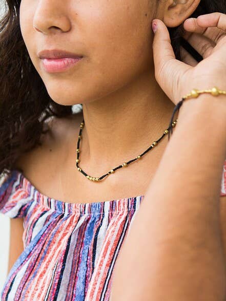 We took our inspiration from a decade ago when chokers were everywhere and we just adore this fun black and gold choker. This delicate looking piece is made from pure-brass recycled bullet casings and lightweight braided cotton string.