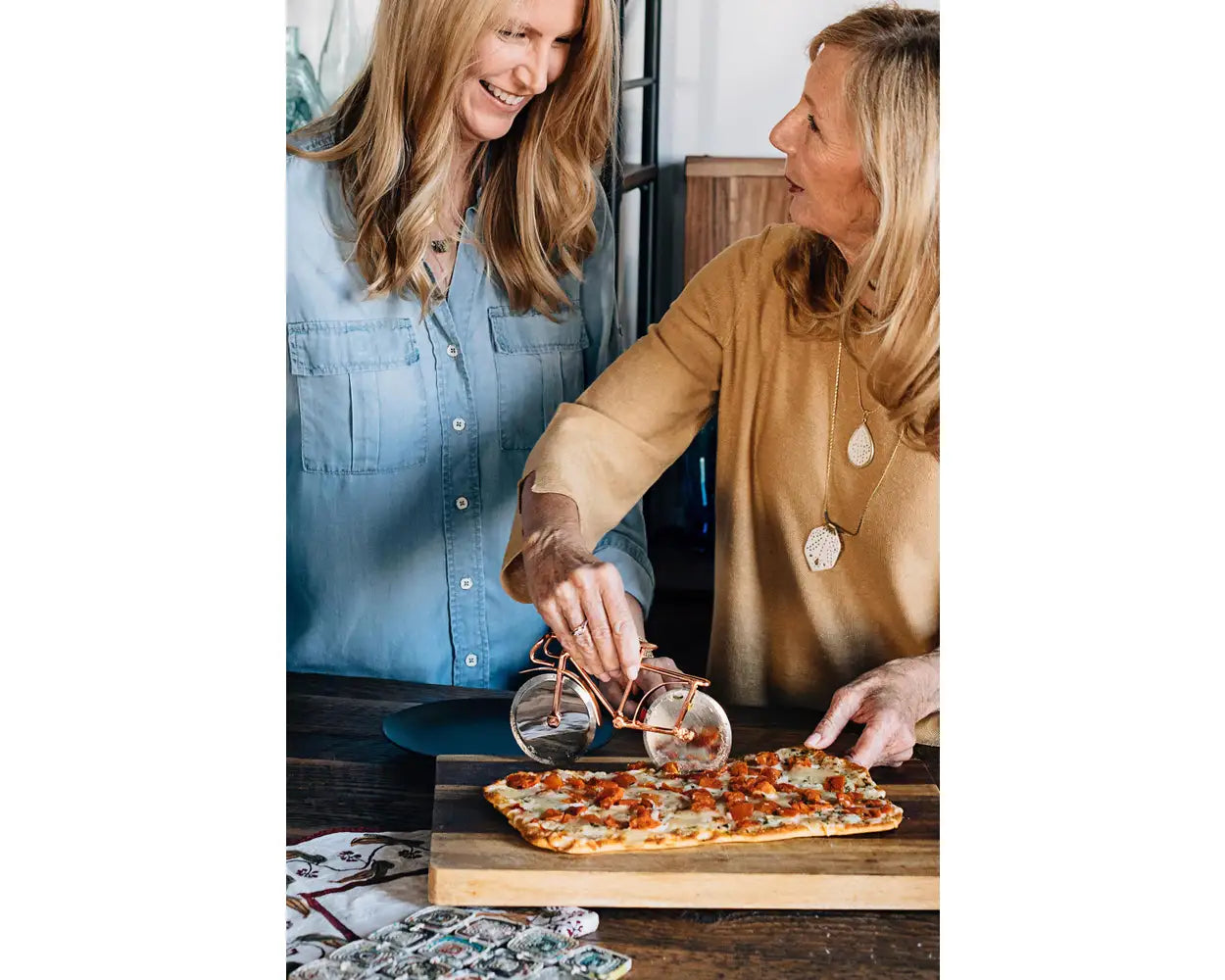 Grab a bike to eat... your pizza. Created by metalworkers in Moradabad, India, this stainless steel pizza cutter is a fun gift for a cyclist or for anyone who never tires of a good pie! Our fair trade partner Noah’s Ark has helped makers develop innovative designs, incorporate alternative materials and find new markets for their work, keeping alive a craft passed down through generations.