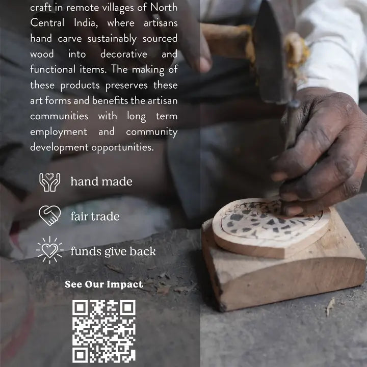Handcrafted from ethically sourced mango wood in north central India, this frame features a clean, natural, and versatile design. Master artisans in Old Delhi apply age-old techniques in wood craft to skillfully hand carve solid blocks of wood into refined, modern home goods.