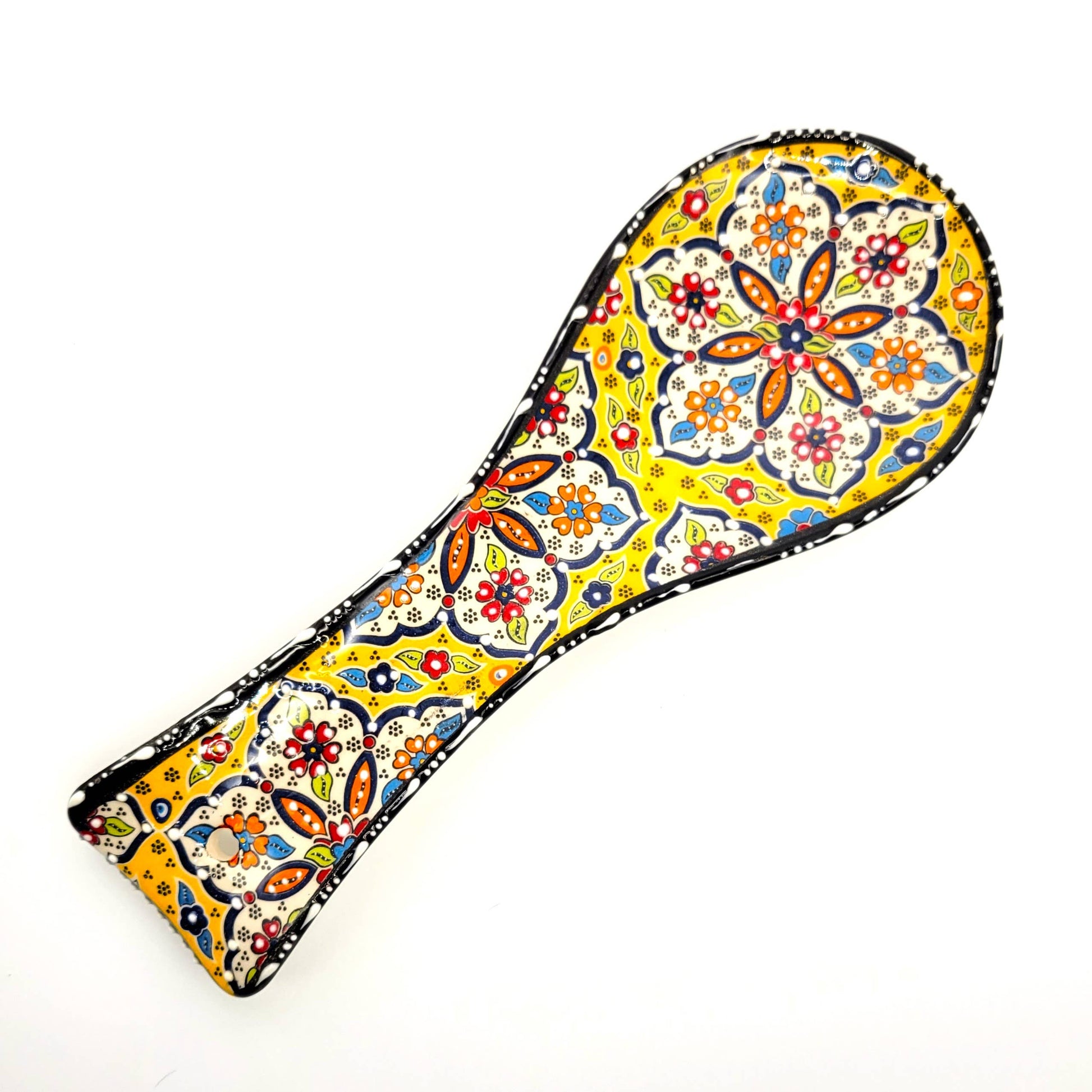 Screen printed patterns elevate this spoon rest from simply functional to purely fabulous. The beautiful artistry makes them a wonderful gift for weddings, house warmings, or hostesses. Small family cottage industries are the core of hand crafted goods around the world. This small family unit excels at the ceramic techniques that have been passed down for generations in Turkey.