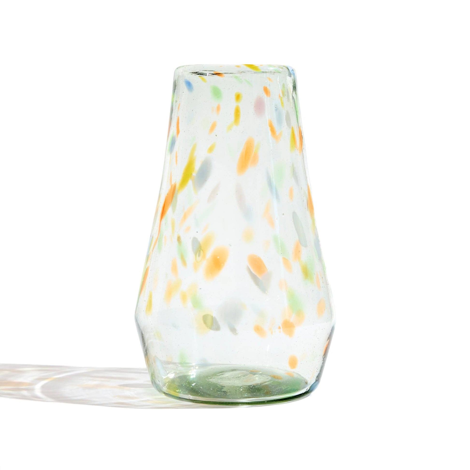 Say hello to the Confetti Atar Glass Vase: the perfect centerpiece for your dining table, or pop of color in your entryway. You can enjoy this everyday piece even without a cause for celebration. The geometric, conical shape and colorful spots of green, blue, orange and purple, make this a perfect gift to pair with our felt flower bouquets and upgrade your gifting.