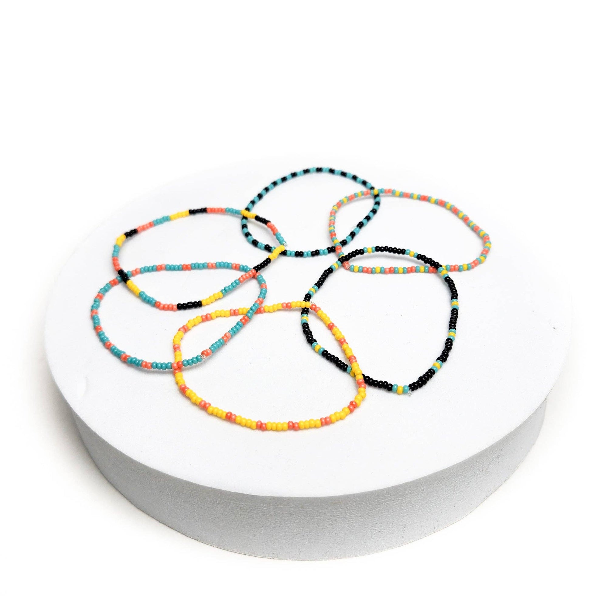 - Colorful Variety: The set includes six bracelets, each with its own distinctive design and color palette, from bold and elegant to bright and peppy.
