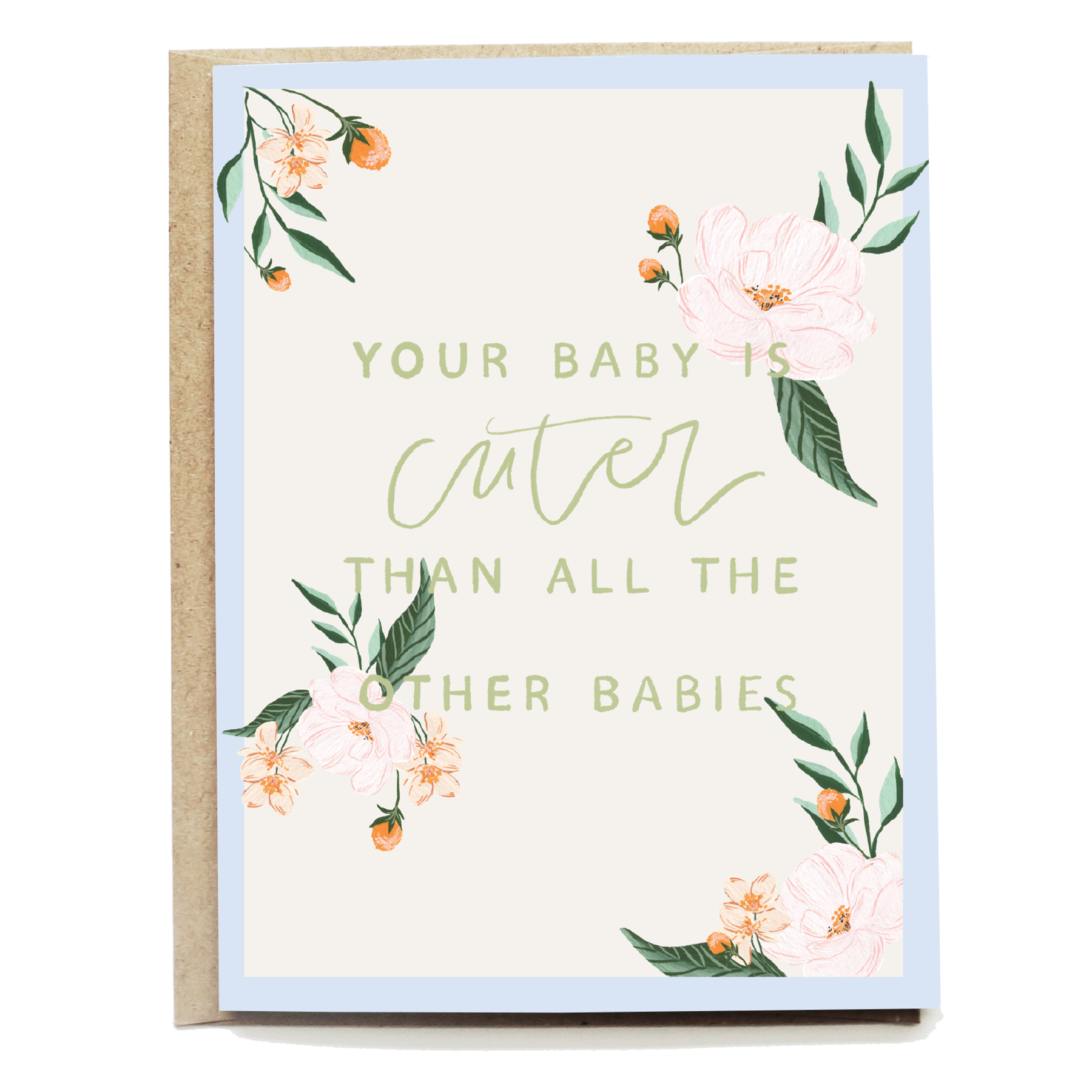 What every new parents want to hear "Your baby is cuter than all the other babies" Let this card put smiles on their face.