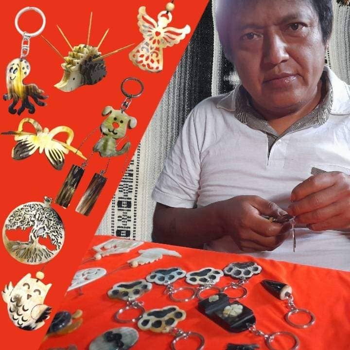 This eco-friendly handmade key chain is one of a kind and made from natural discarded and recycled bull horn crafted by a Peruvian artisan. We designed with the artisan based on his technique, tradition, and tools experience. After boiled and melted, each unique piece has been hand cut, molded, carved, and polished to bring out the natural horn color and texture in a brilliant finish.