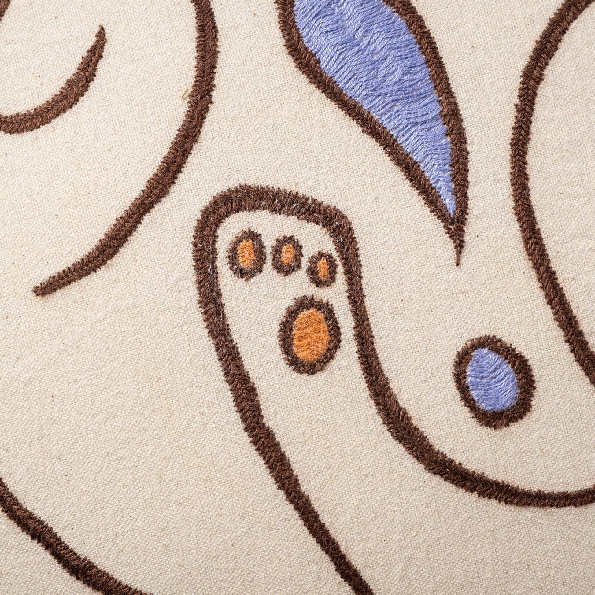 Bring joy to the cat lover in your life with this sublime feline pillow! Featuring a whimsical smiling cat design, this round pillow is adorned with gorgeous purple and maroon highlights. Add a touch of whimsy and comfort to your home decor with this must-have accent piece! Ten Thousand Villages Exclusive design. Beautifully handcrafted in India.
