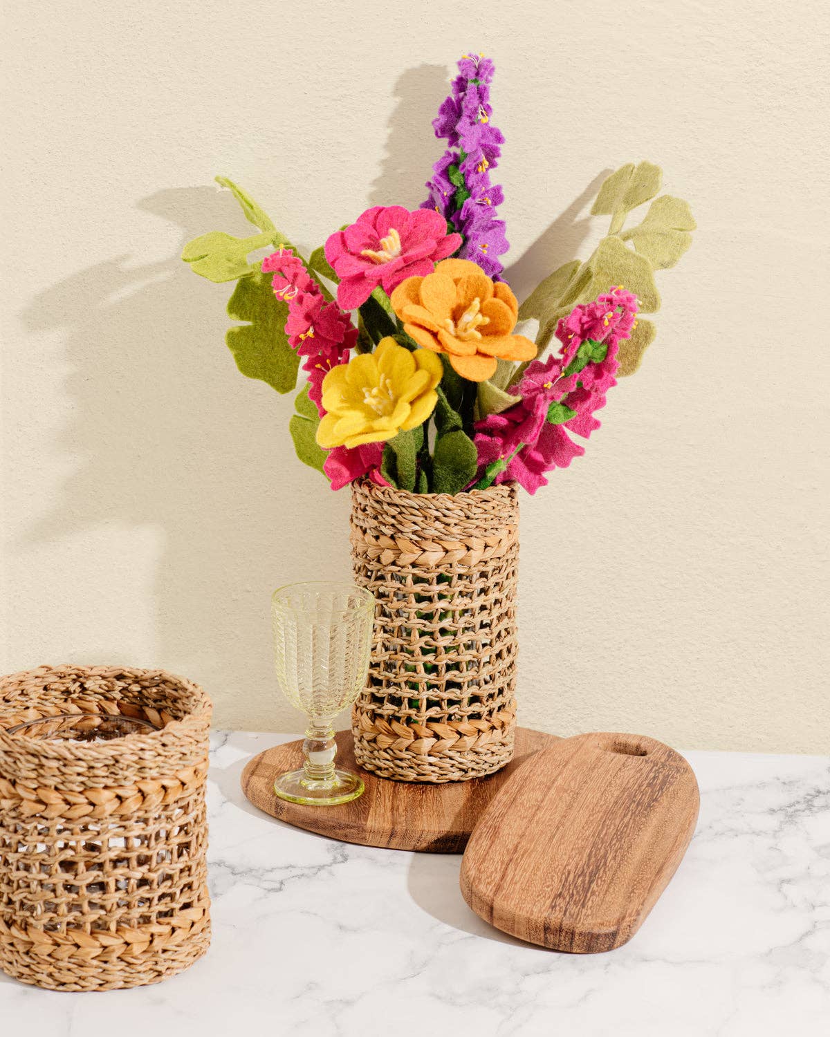 Symbolizing affection and admiration, this felt Camellia flower is a delicate and sentimental way to share your love. Each bright stem features layers of delicate petals framing the playful pistols in the center. Each flower is beautifully handmade by women artisans in Nepal, giving back to women-led cooperatives paying fair living wages and offering sustainable incomes. 16” L 5” W petals