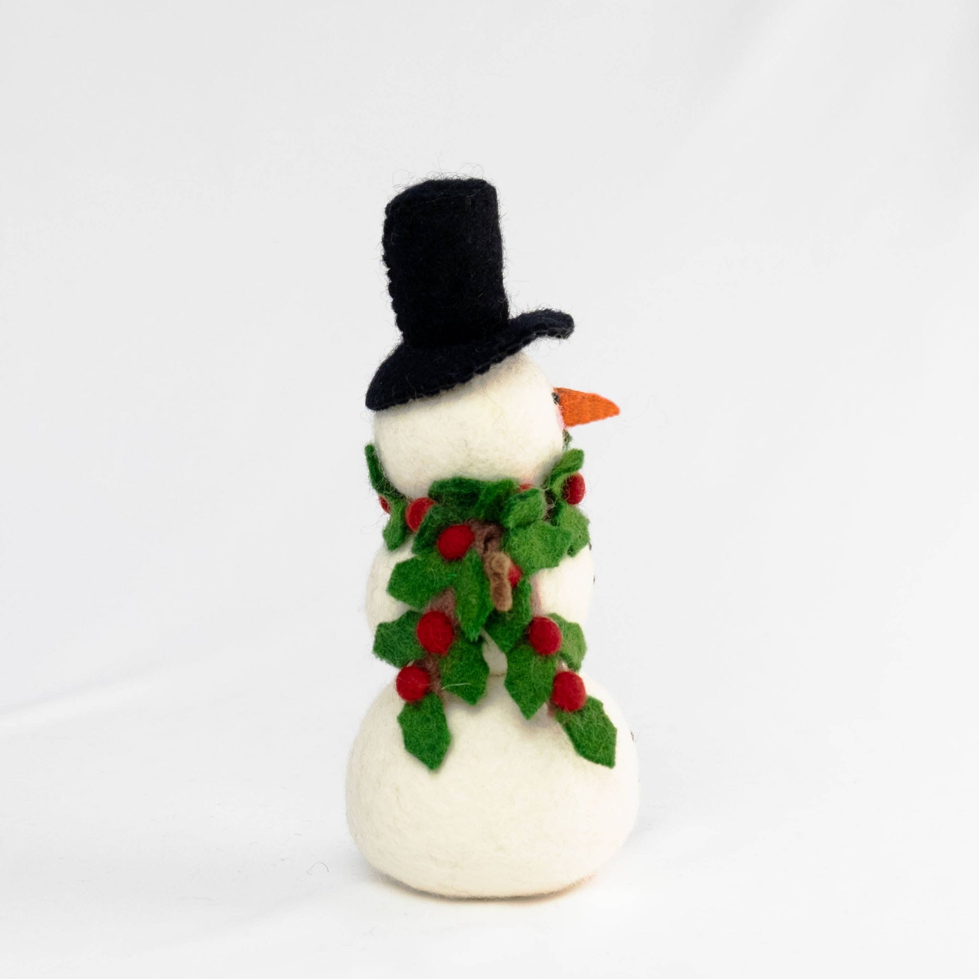Handmade Fair Felt Snowman makes great Holiday Decor. Produced in a small family owned workshop in Kathamandu, Nepal that follows fair trade practices. We give a portion of our proceeds to pay school tuition to several of our worker's children.