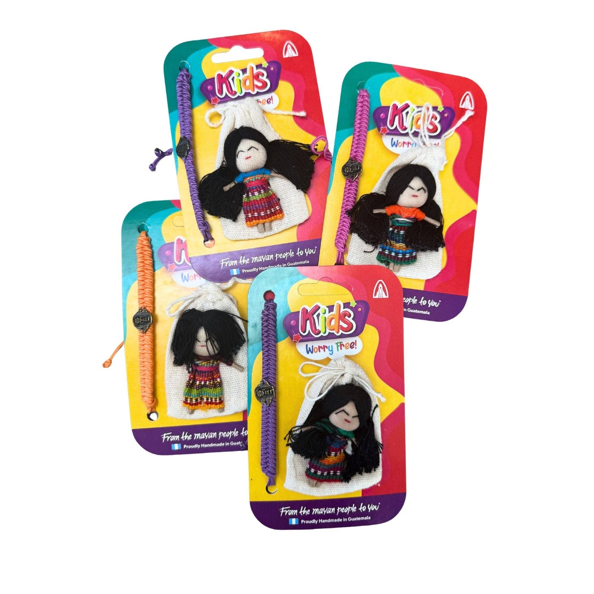 Slip the bracelet on as a reminder of strength and connection, and whisper your worries to the tiny doll—perfect for kids, tweens, and adults alike. Whether displayed in a boutique gift section, mental health display, or back-to-school feature, these handmade sets make thoughtful tokens of care and encouragement.