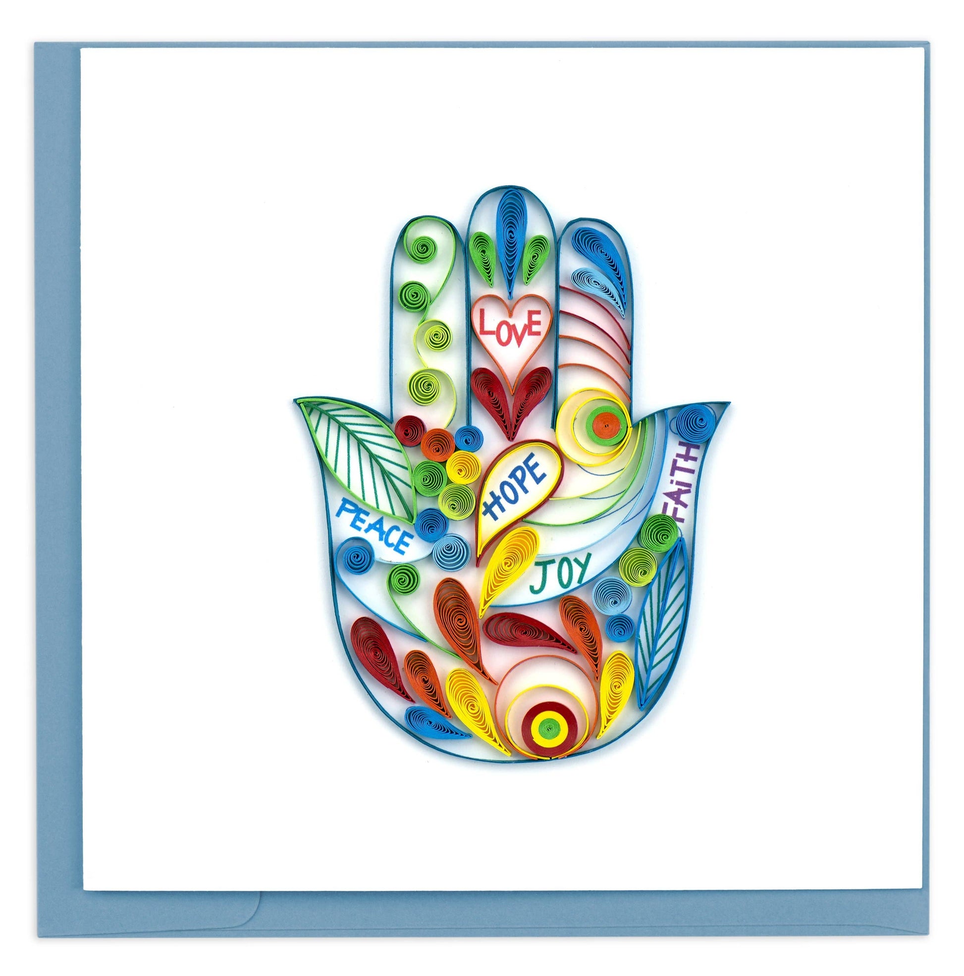 All of our cards come with a coordinating envelope, and a short history of quilling on the back of the card. Our square cards require extra postage.