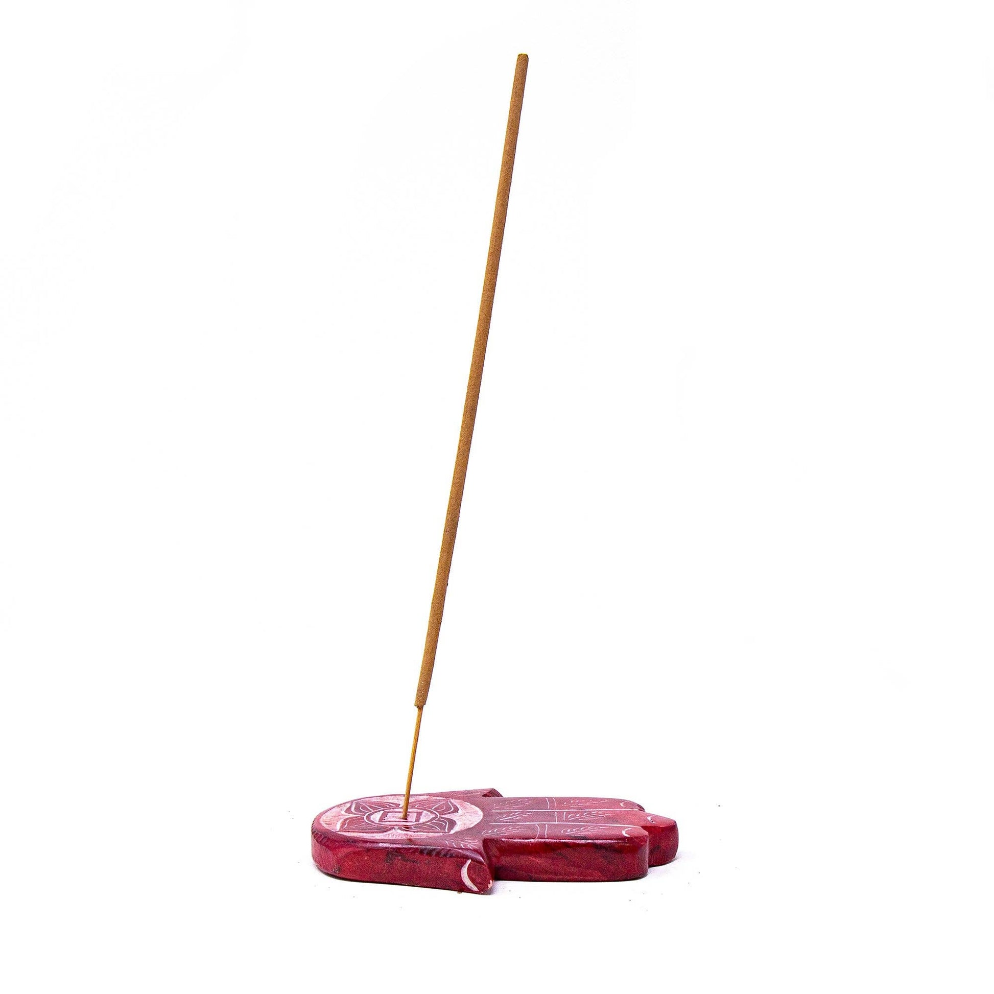 Each Hamsa hand is crafted from local Indian soapstone, dyed, and etched beautifully with a chakra design.
