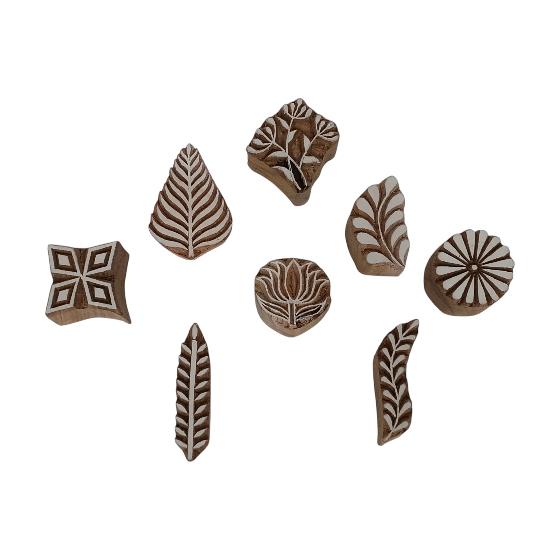 Hand-carved Mango Wood Printing Blocks - Set of 8