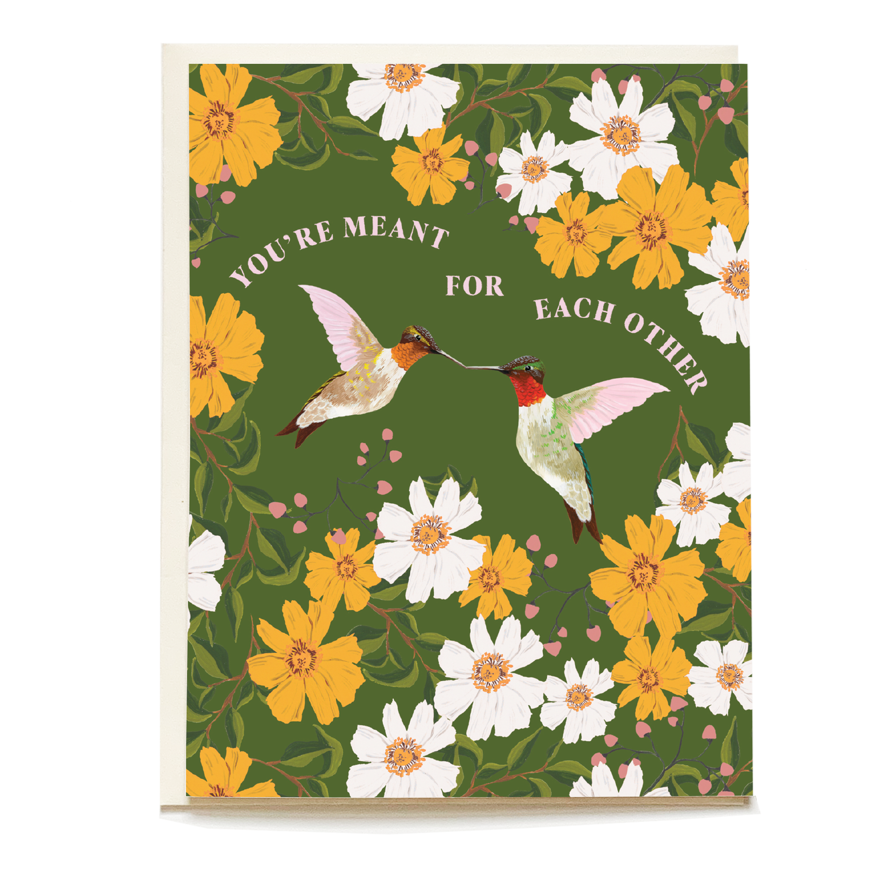Hummingbird Wedding Greeting Card - cute - relationship - lovebirds - flowers Sentiment: " You're meant for each other" Card is printed on 100% PC Recycled Paper, made with wind power in the USA Size: A2 (4.25x5.5), blank inside Matching Envelope