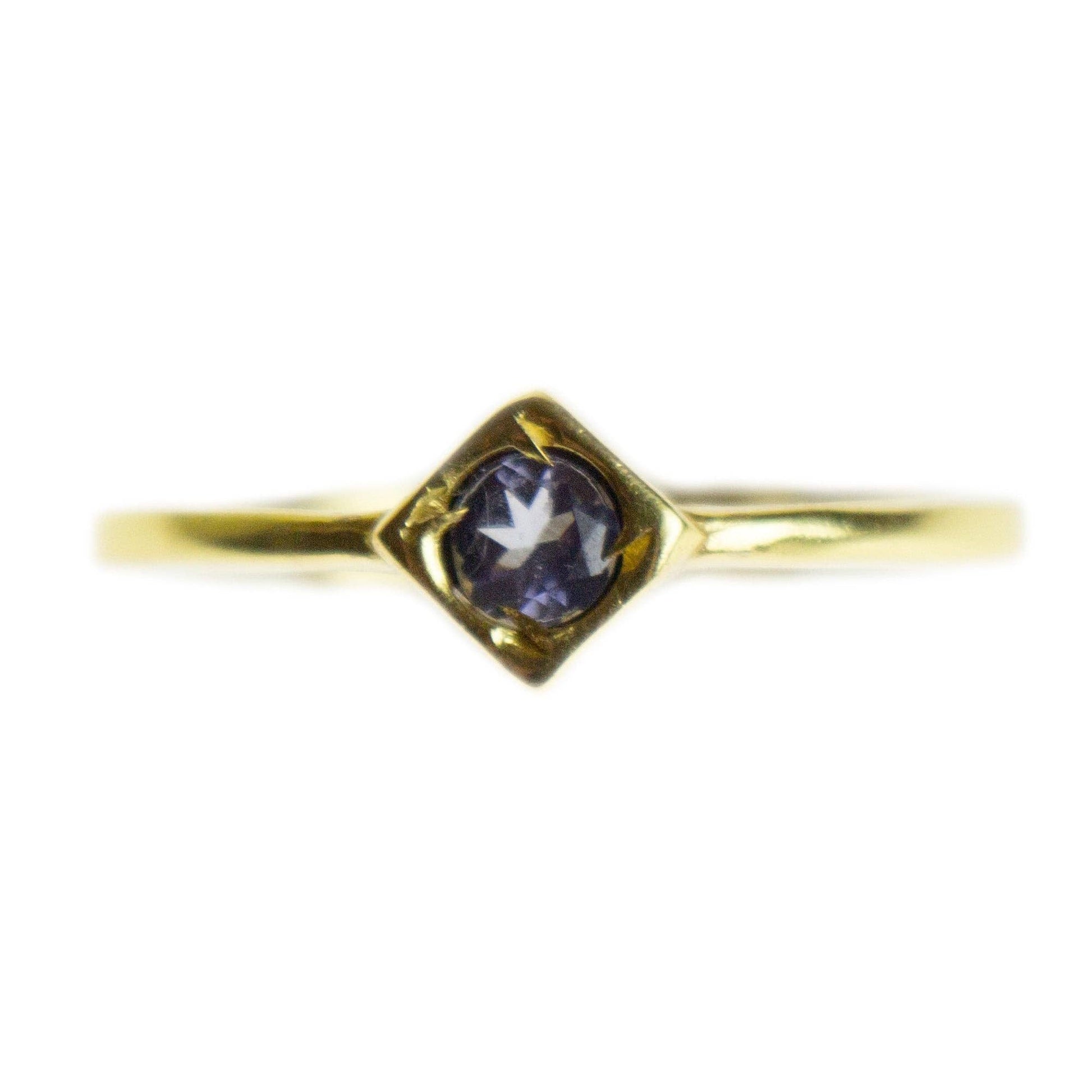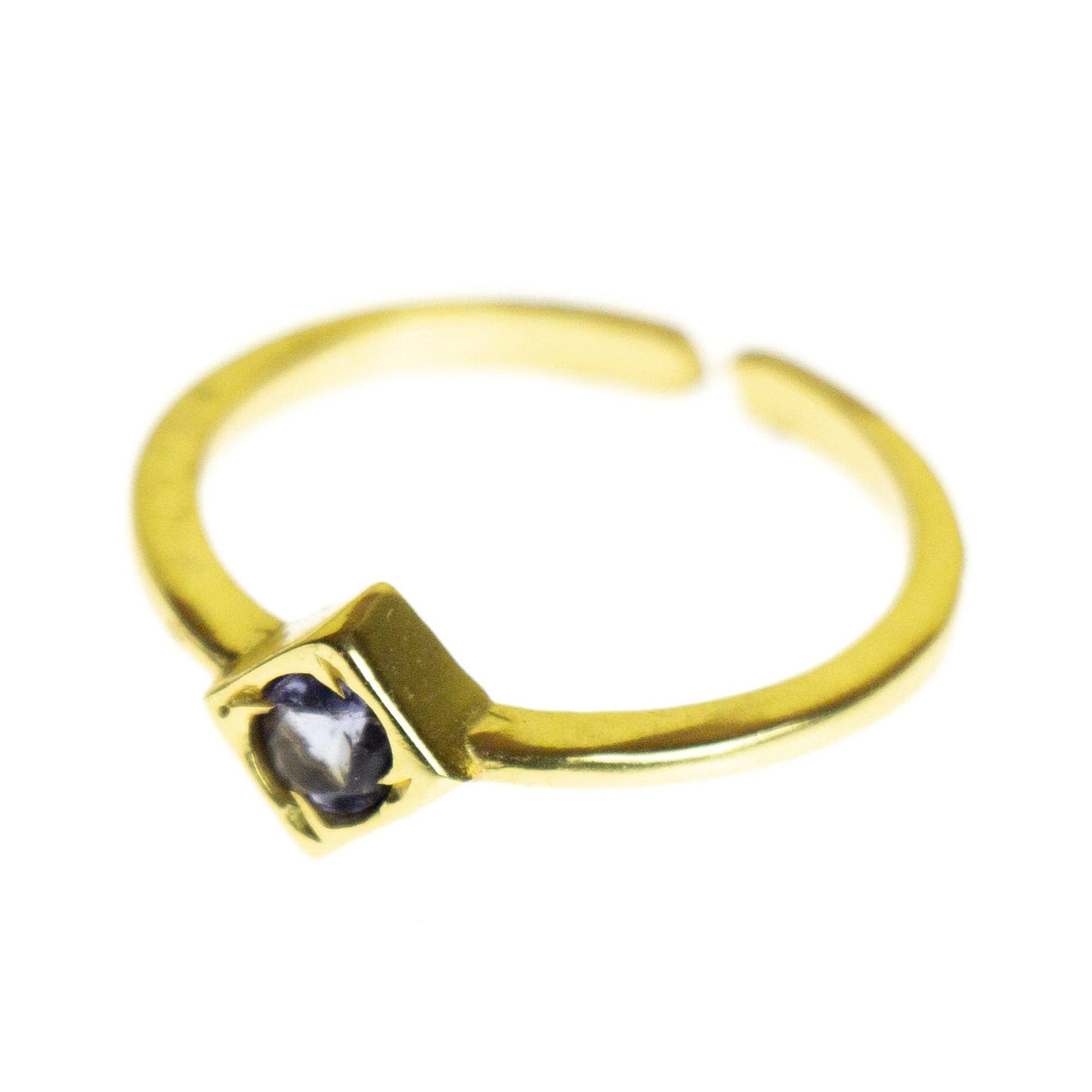 This delicate ring features a diamond shaped setting with a beautiful blue Iolite stone. The hand-crafted brass setting features an adjustable band. Lolite is the birthstone for people born in the winter solstice (from 21st December to 19th January). This beautiful stone is also considered a powerful stone for Arians and Pisceans. Wear this ring as a simple stand-alone or stackable.