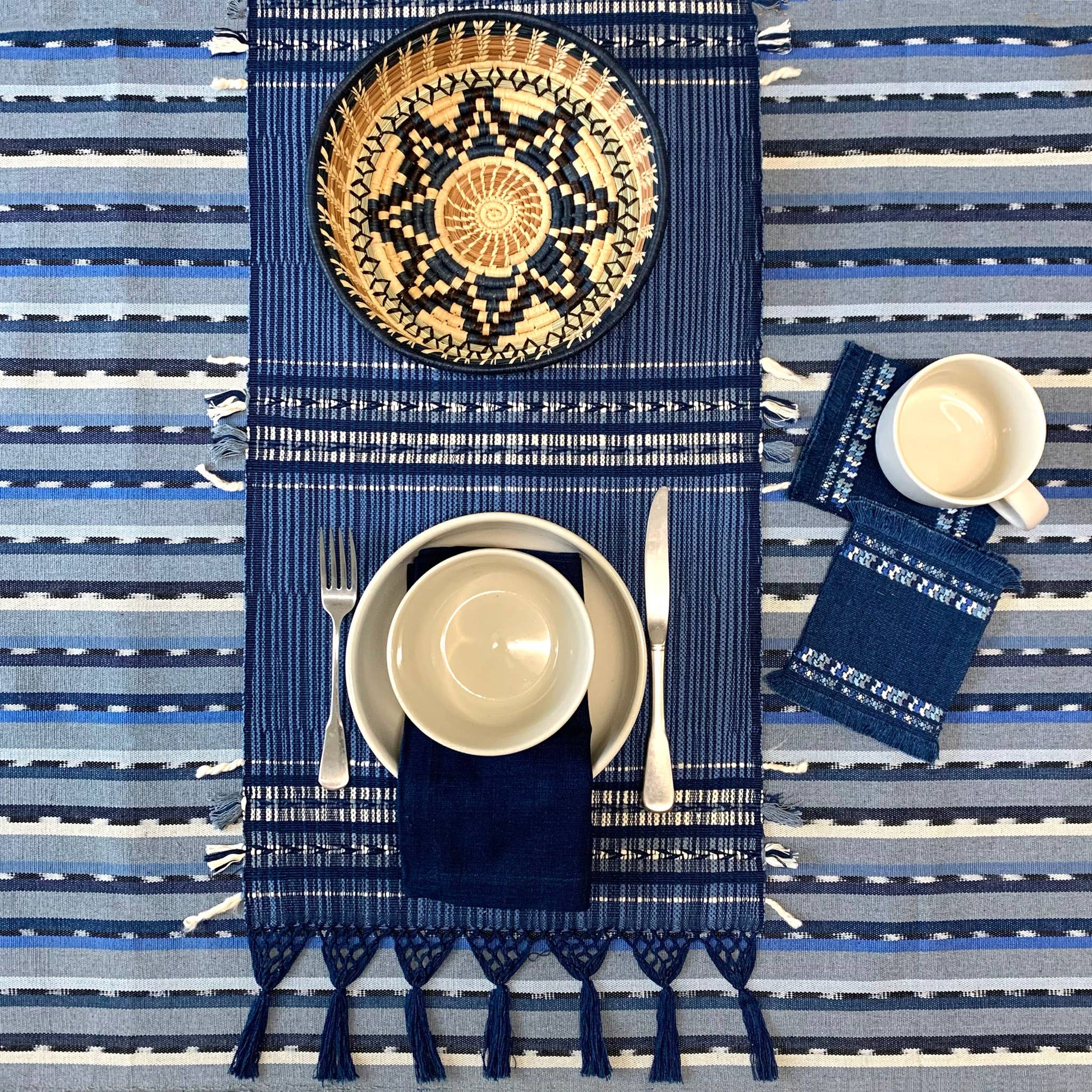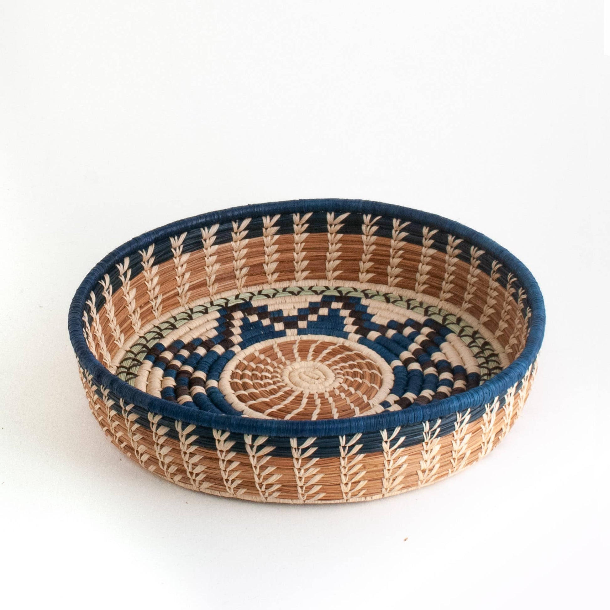 Statement basket with a stunning central star motif rendered with pine needles, dyed raffia and pajón, a native grass of the Guatemalan Highlands. Our artisan partners in Sololá designed this practical and functional basket which is also perfect for display.