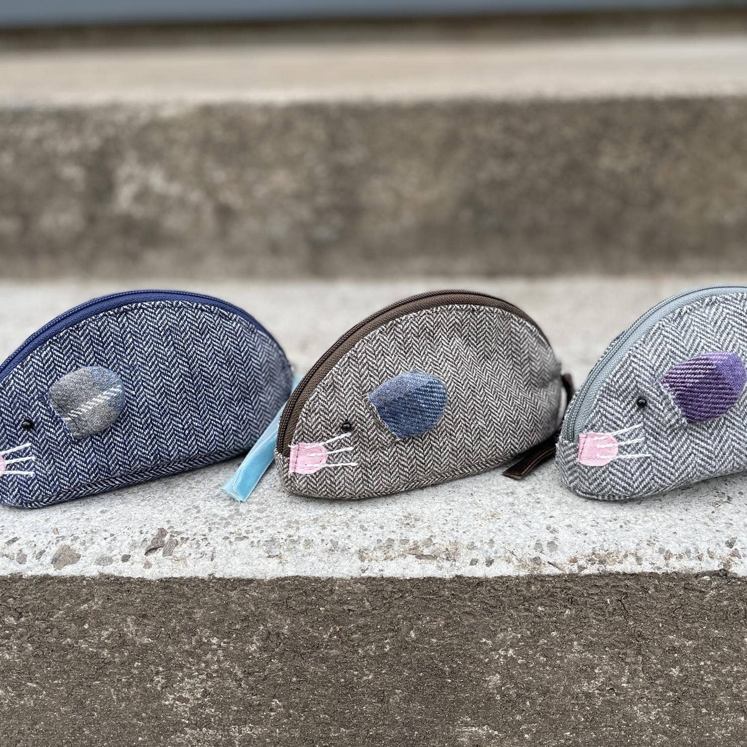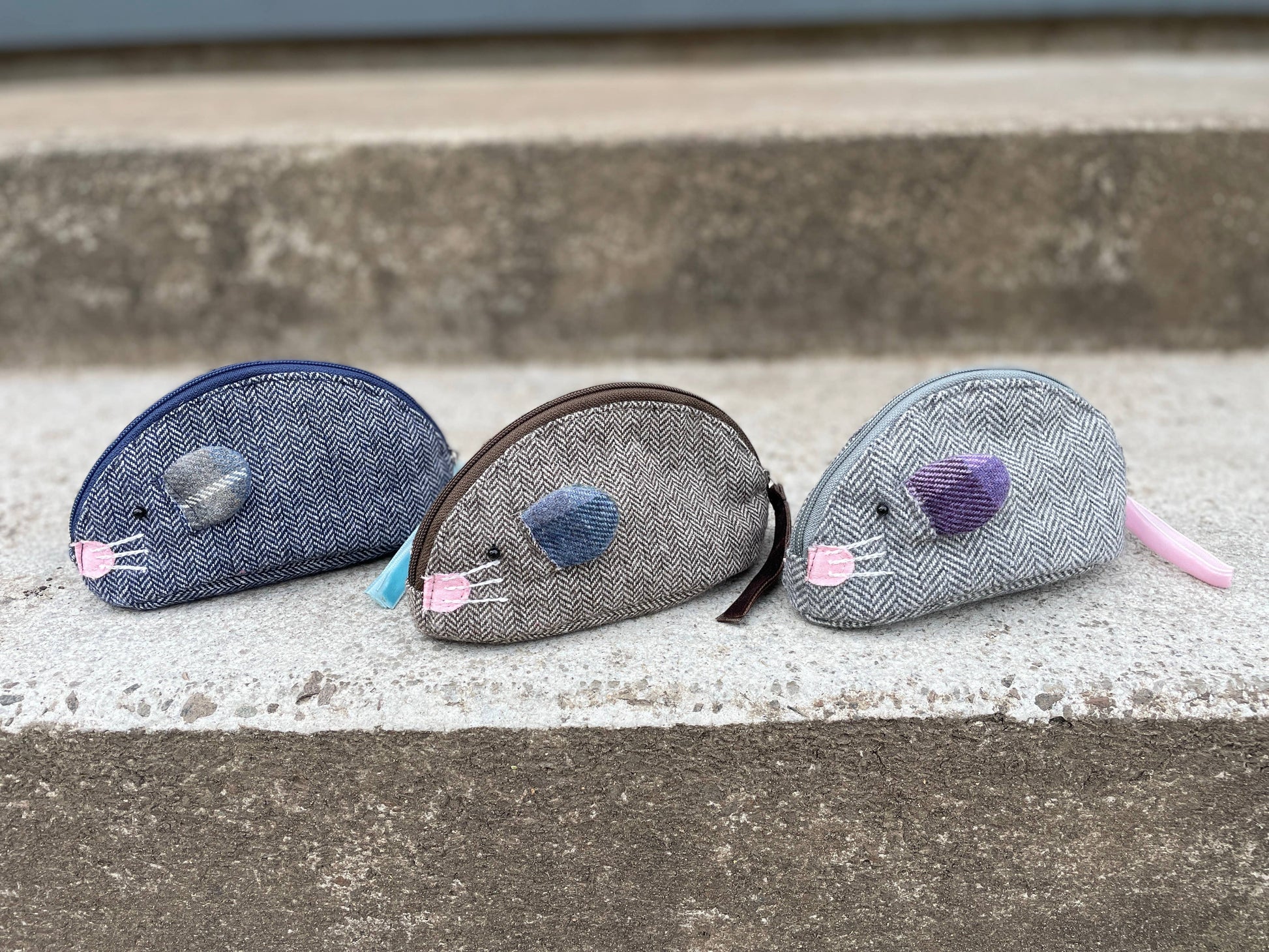 3 dimensional mouse shaped novelty coin purse, with a single zip and cute features.