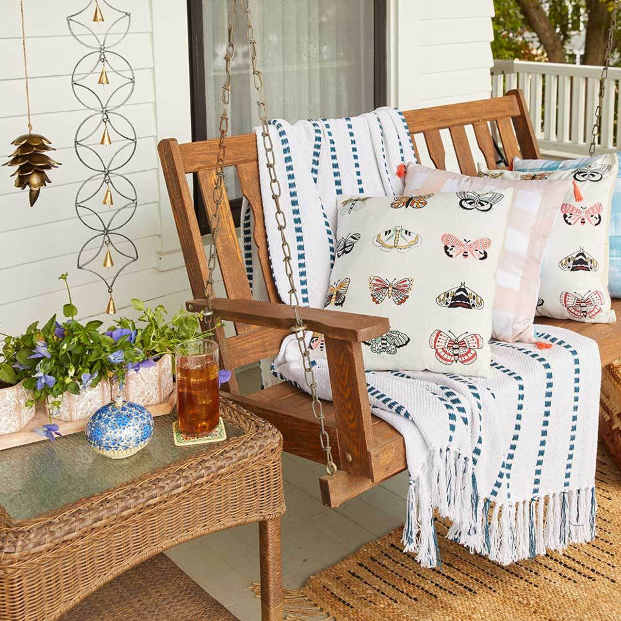 Take the popular Rethread Throw to the beach! Oversized throw blanket is made from washed and recycled clothing, which is unraveled, cleaned, and re-woven. Knotted fringe ends. Also great for picnics and cookouts!