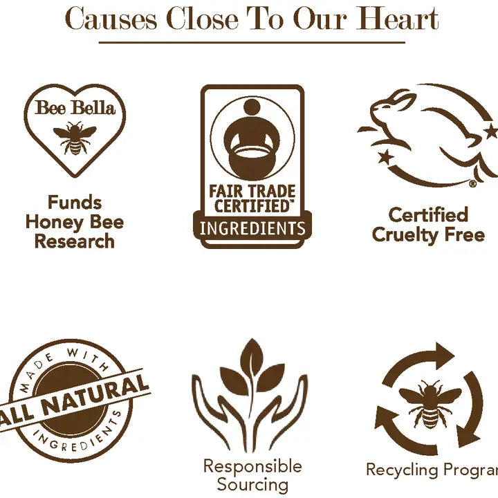 The tubes are made from sustainable bamboo, the inside plastic liner is made from ocean-recycled plastic. Bee Bella’s ingredients are Fair Trade Certified and the company is certified cruelty free.