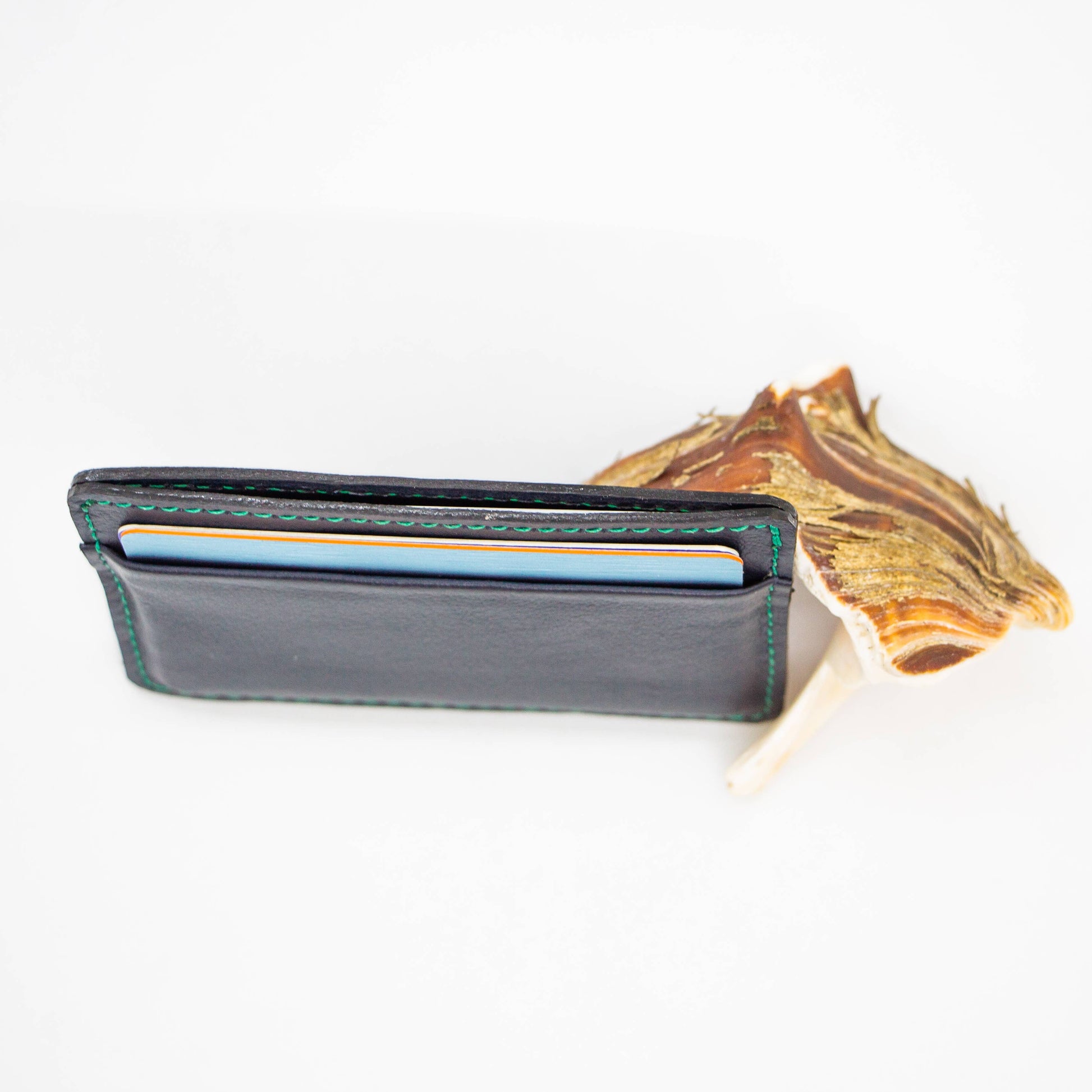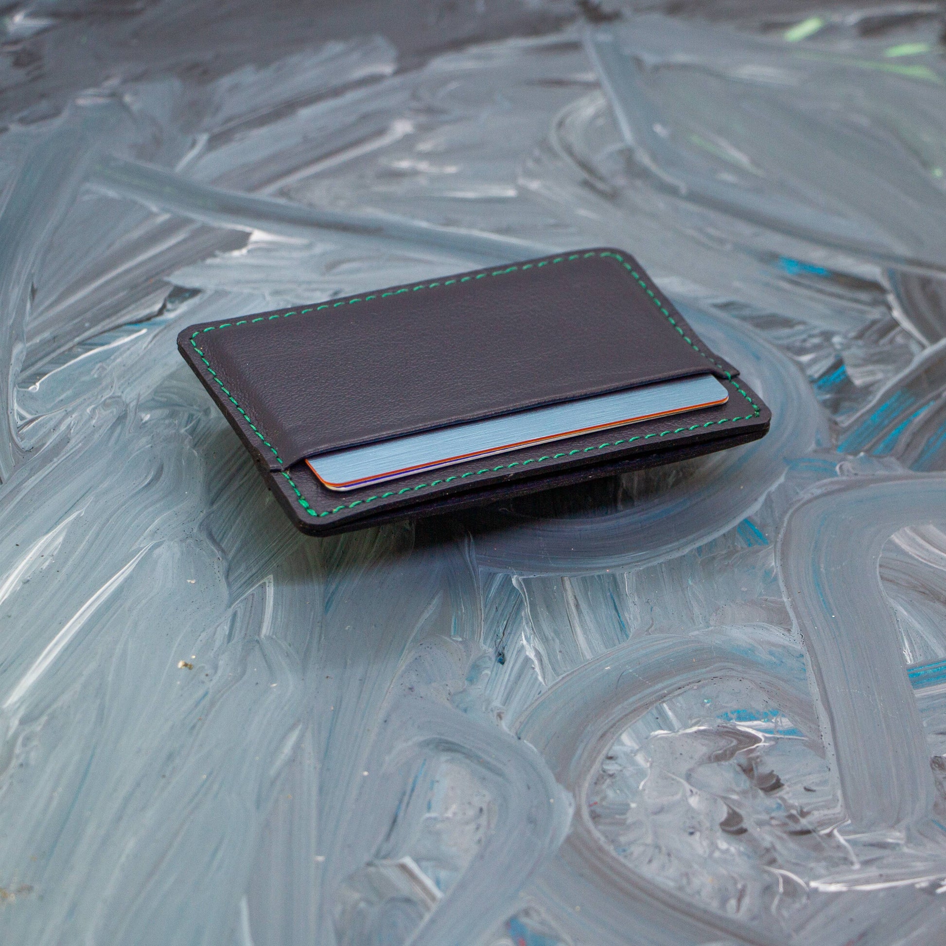 Discover the luxurious and supple Navy Blue leather and Rich Green Stitching of the Deep Ocean Leather Card Wallet from the Origin Creations Fine Leather collection. Holding up to 6 cards and cash, this minimalist wallet is inspired by the Great Pacific and made with hand-cut, full-grain Nicaraguan hides. Crafted with great attention to quality, people, and the planet, this wallet is made in a small workshop in León, Nicaragua, where the community learns fine leathercraft and creates new opportunities for themselves and their families.