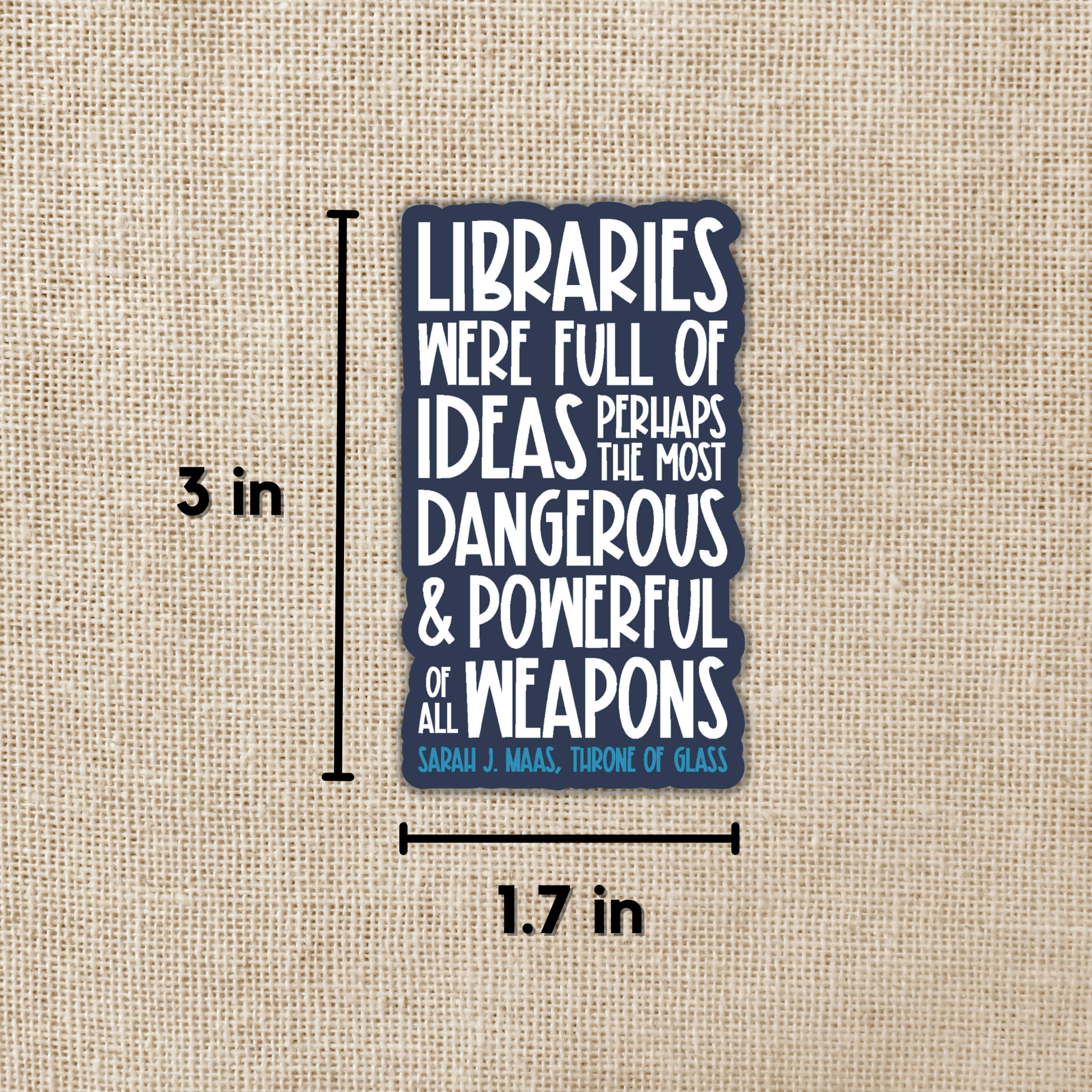 "Libraries were full of ideas, perhaps the most dangerous and powerful of all weapons." - Throne of Glass, Sarah J. Maas