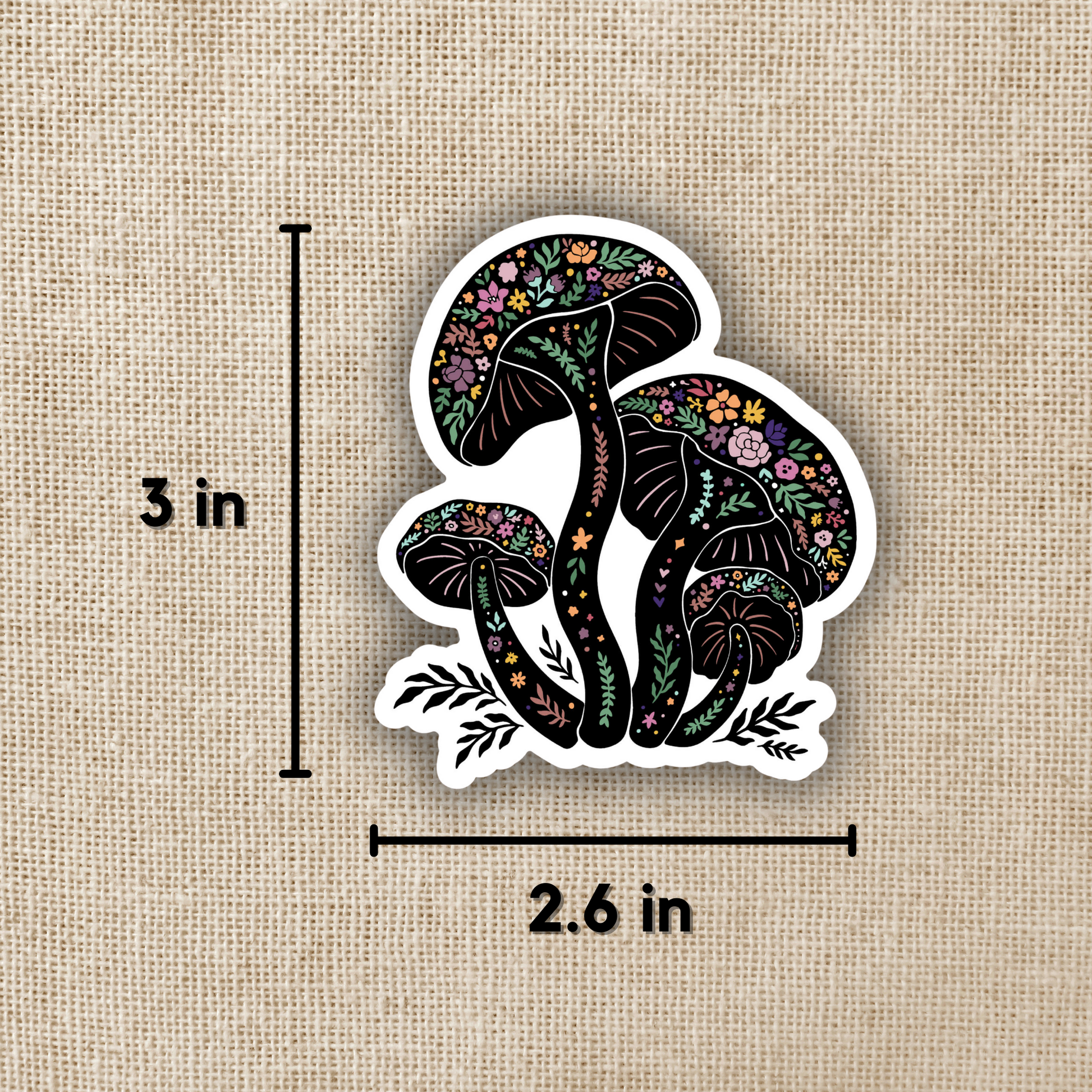 Set of mushrooms decorated with a jewel-toned, floral pattern.