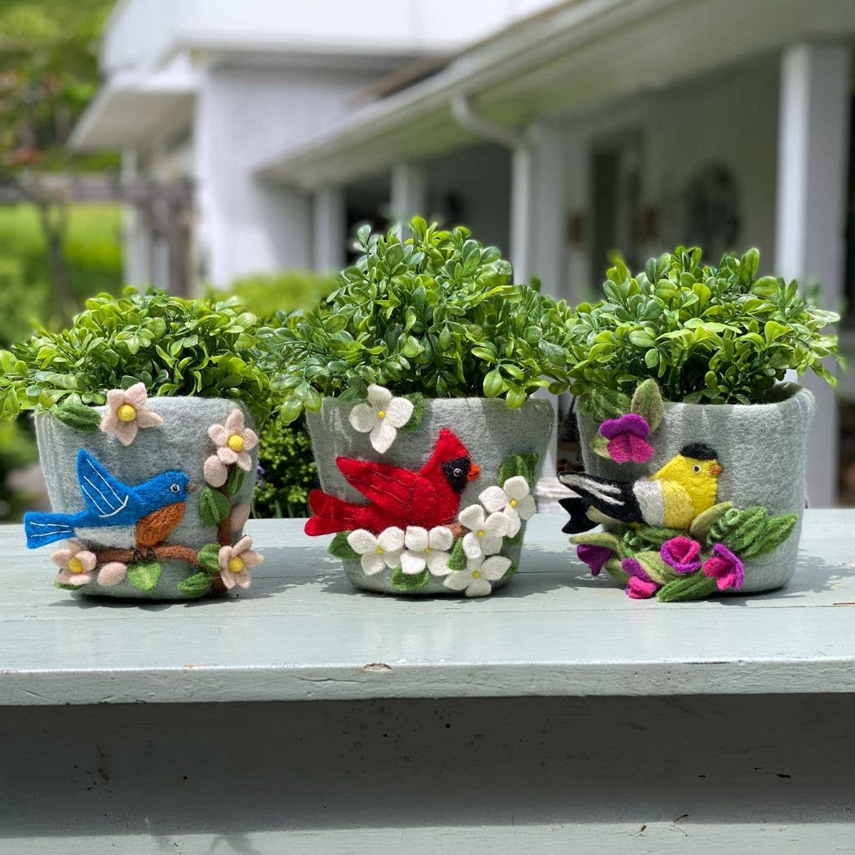 This sophisticated woolen pot can hold all kinds of things, including potted plants up to 5.5"dia. Excess water will wick through the natural woolen fibers, so place a dish inside or outside just in case. Natural wool will naturally dry out. Use as a gift basket for special occasions, or as a container for all sorts of household items. Made in a fair trade certified production center in Nepal.
