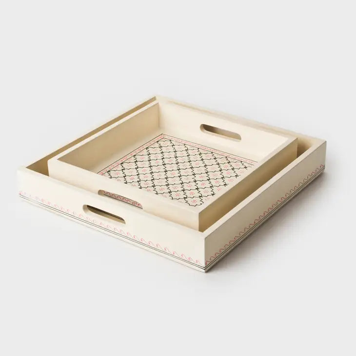 Hand carved and hand painted using traditional Mehndi patterns in sweet, summer hues.