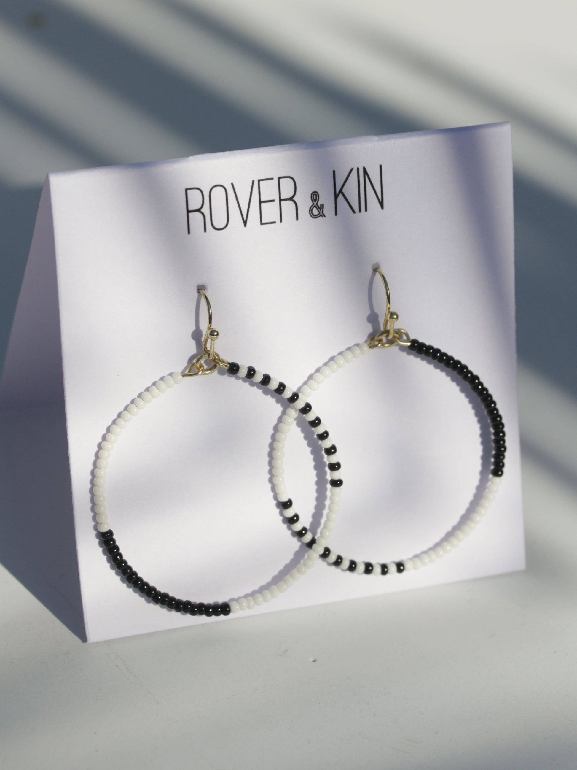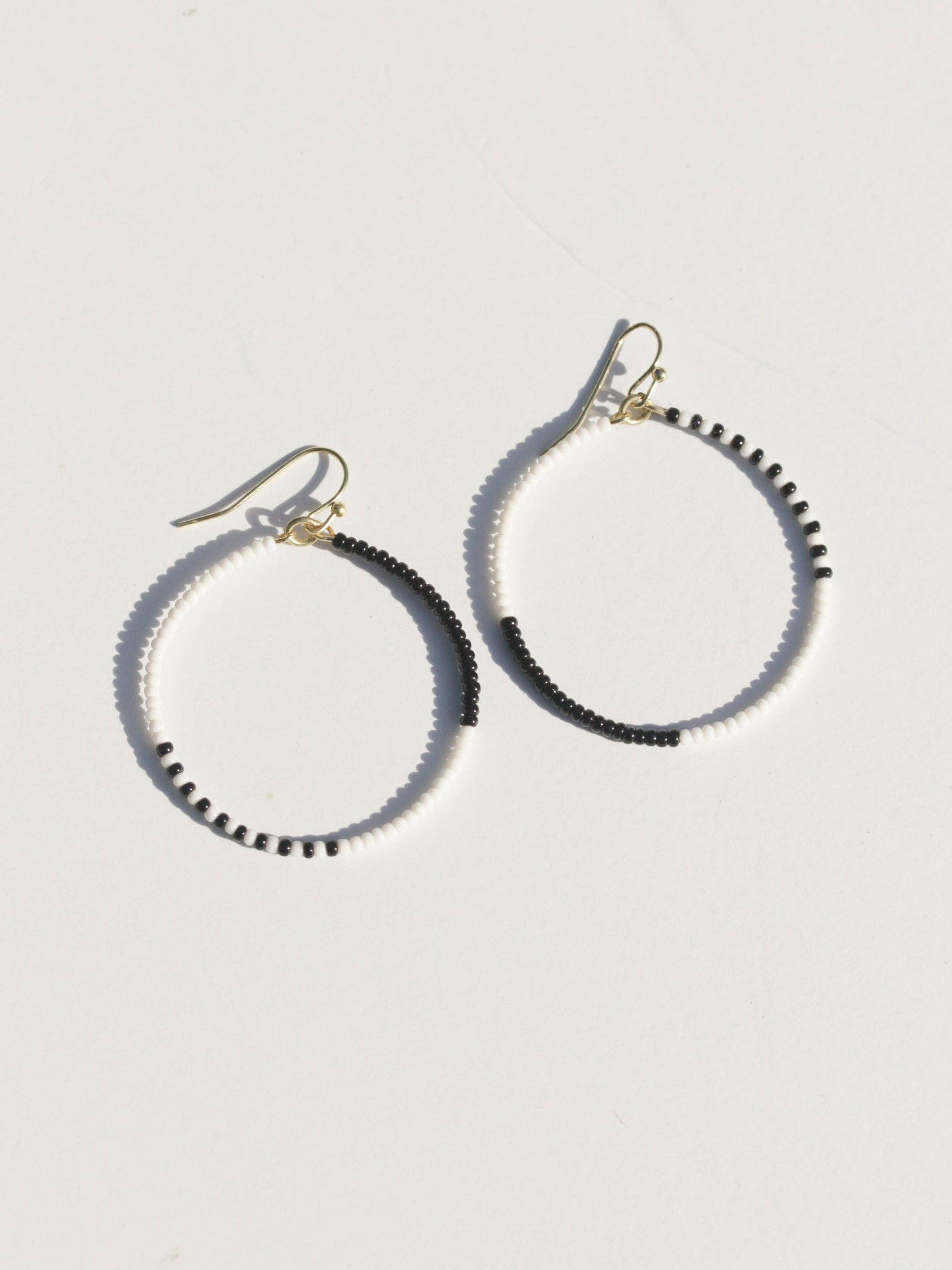 Asymmetrical and fun monochrome beaded hoops for a simple and unexpected look.