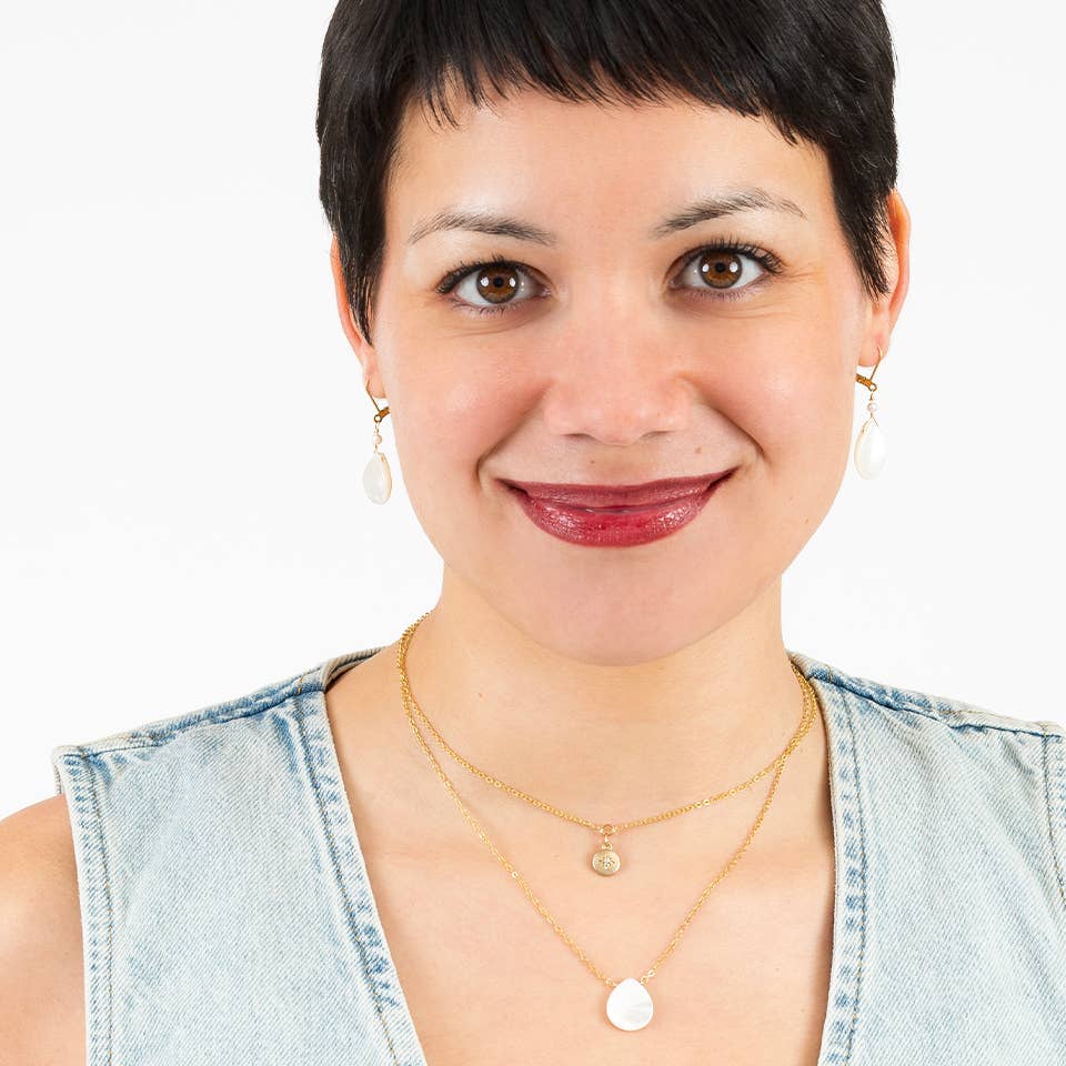 This Mother of Pearl Tear Drop Necklace brings a delicate touch of the ocean to your everyday style. Featuring a beautifully crafted shell pendant, it hangs from an 18-inch adjustable gold-plated brass chain, allowing you to customize the fit for comfort.