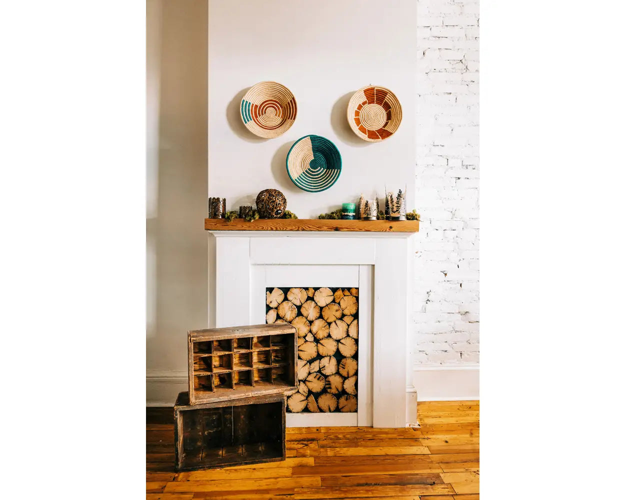 Handwoven by women artisans in Uganda, the Motion Basket is an exquisite example of Ugandan basket weaving, using raffia and banana stalk. The modern design mimicking sound or radar in motion, in natural raffia and teal colors, could earn it a feature spot in a boho wall installation, or as a unique tabletop catch‒all.