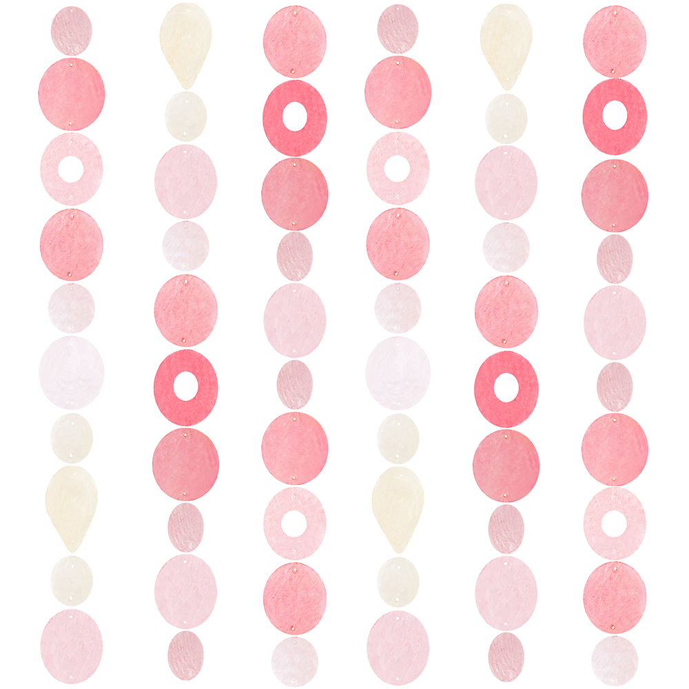 These capiz strands are very popular, coming in a large selection of beautiful color combinations. They create a lovely environment in any setting and come with a metal ring at the top for easy hanging.