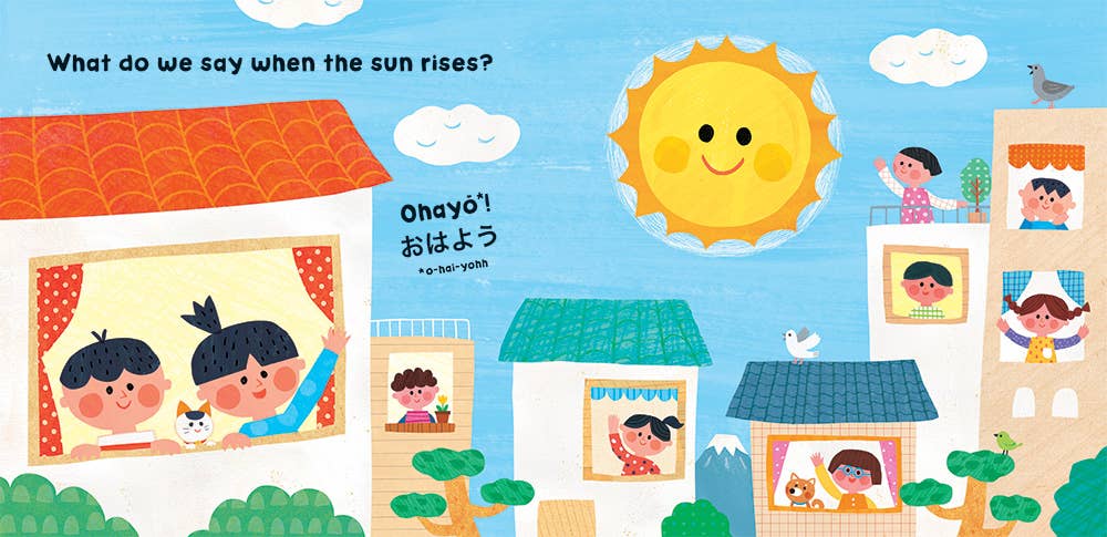 Float through the cherry blossoms, snack at the market and watch the stars twinkle following a day in Japan. With text and artwork developed especially for babies, author Emily Satoko Seo and illustrator Aunyarat Watanabe draw on personal experience of life in Japan to create this appealing board book for young readers