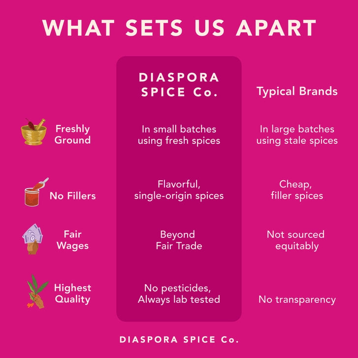 As die-hard popcorn people, we can verify that our Popcorn Masala is the G.O.A.T. It is cheesy from nutritional yeast, umami from Pahadi Pink Garlic, just spicy enough from a combo of sweet and smoky chillies, and deeply earthy from Pragati Turmeric. It pairs beautifully with ghee, butter, or coconut oil for a truly next-level popcorn experience.
