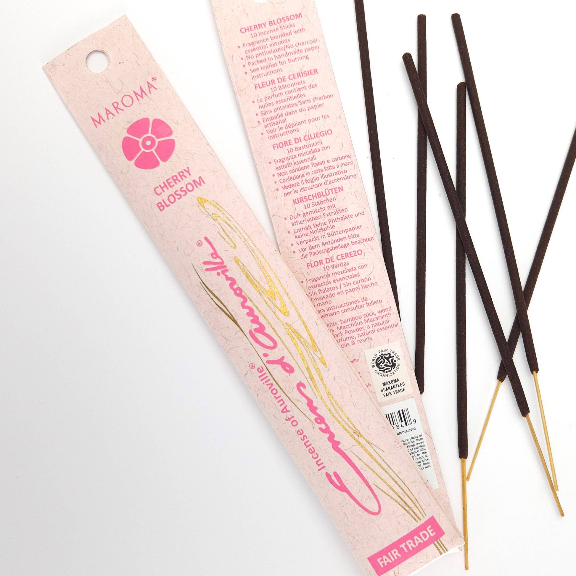 Enhance any room with the refreshing aroma of cherry blossom fragrant incense sticks. Each bamboo stick is bound with wood powder and a botanical gum base, then dipped into a well balanced blend of natural oils.