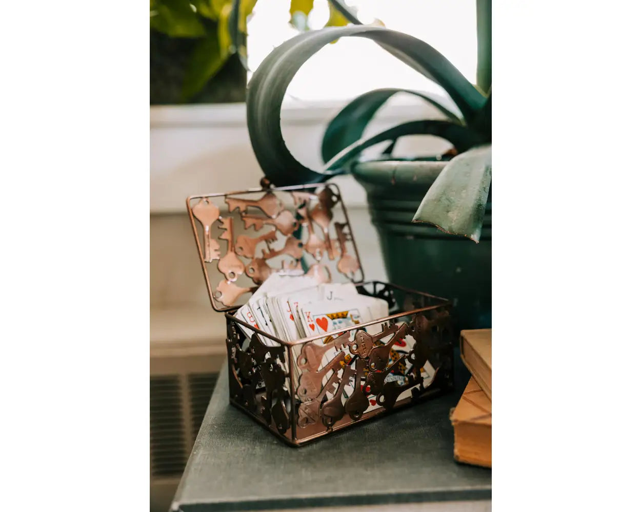 This box is handcrafted from recycled iron keys by artisans working with our fair trade partner Noah's Ark in India.