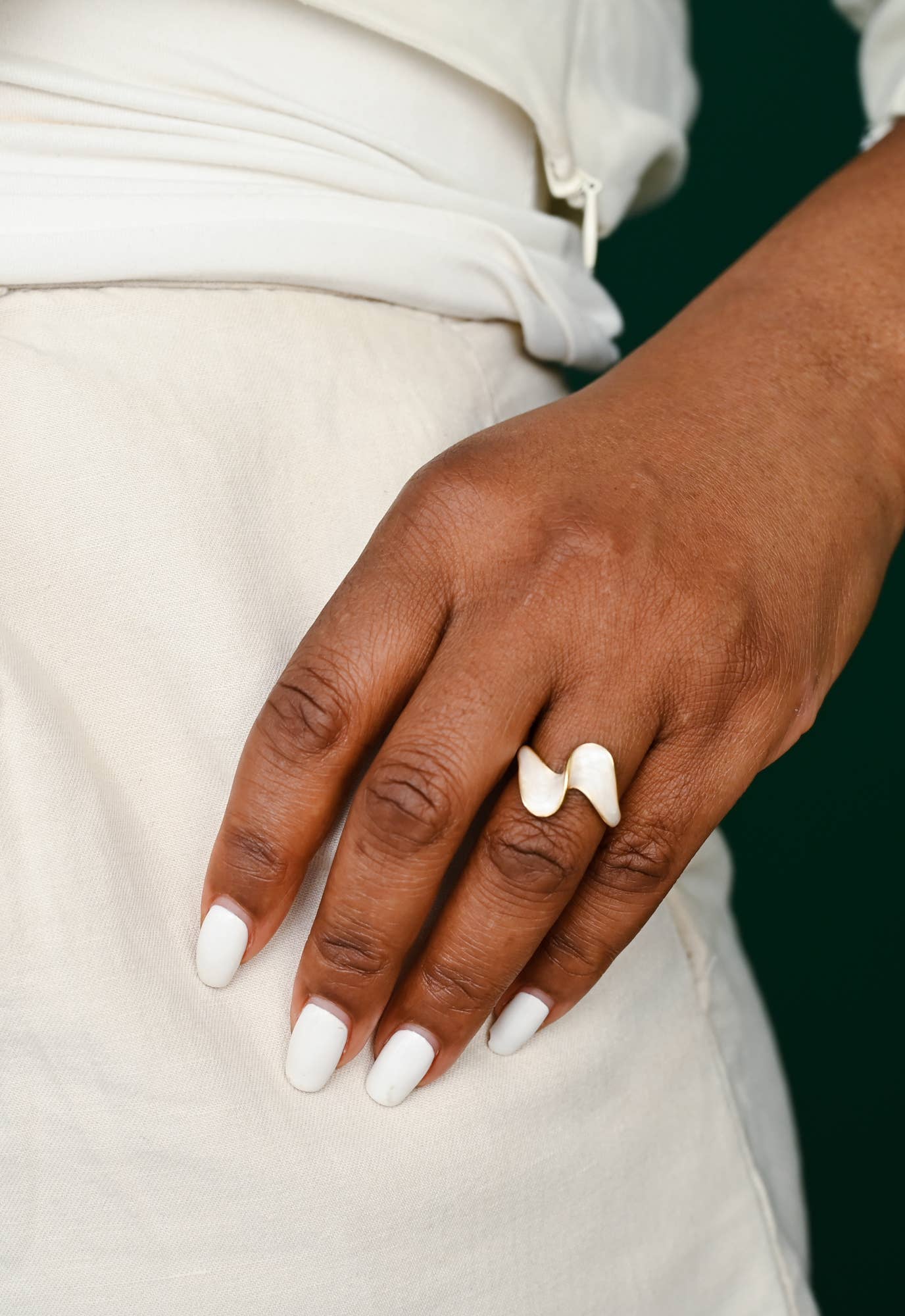 Graceful and grounded, the Ribbon of Light Ring in Sandstone brings an earthy elegance to your every day. With its warm tan enamel and 18K gold-plated band, this adjustable ring wraps your finger like a gentle ribbon—subtle enough for stacking, striking enough to stand alone.