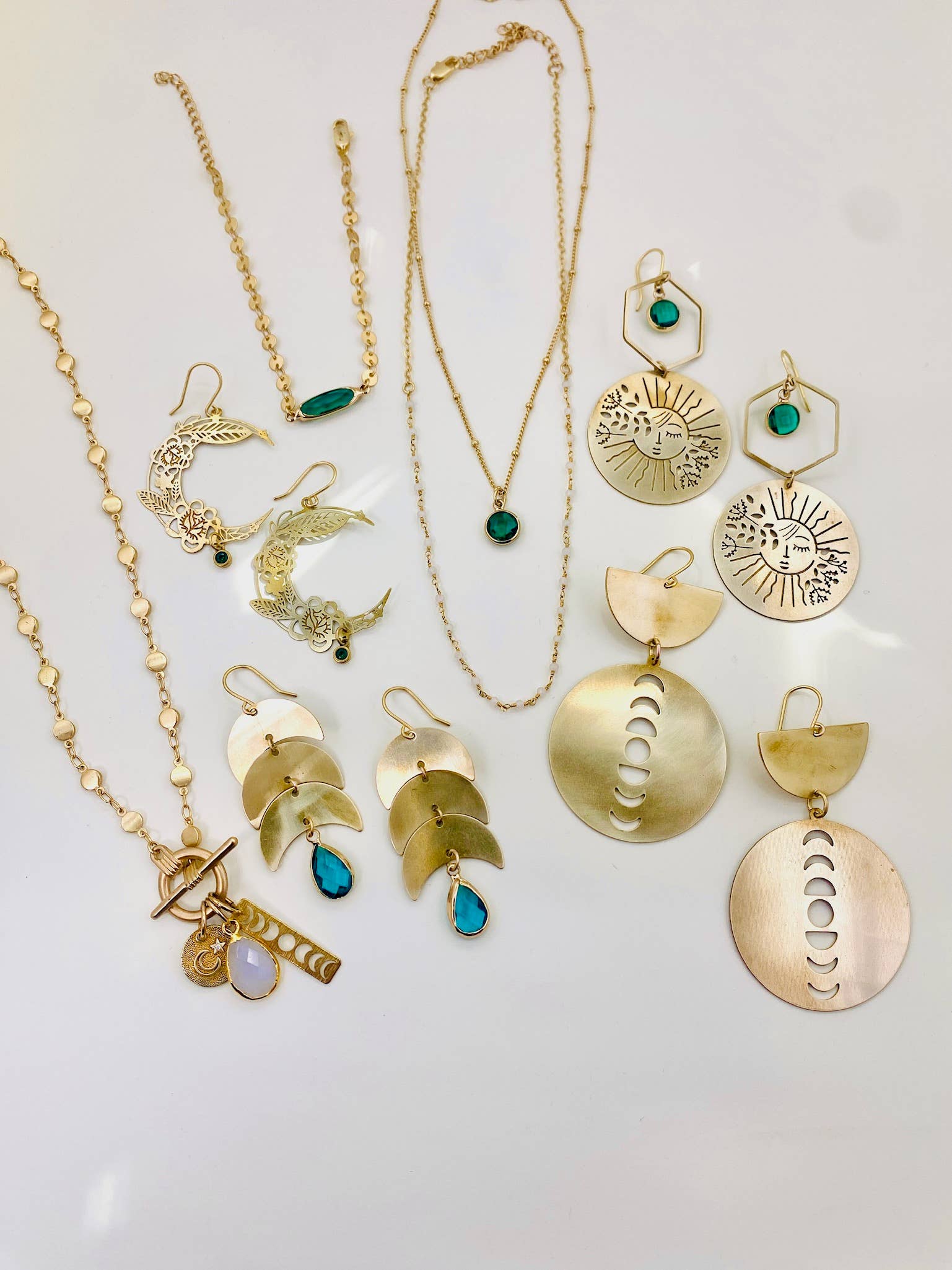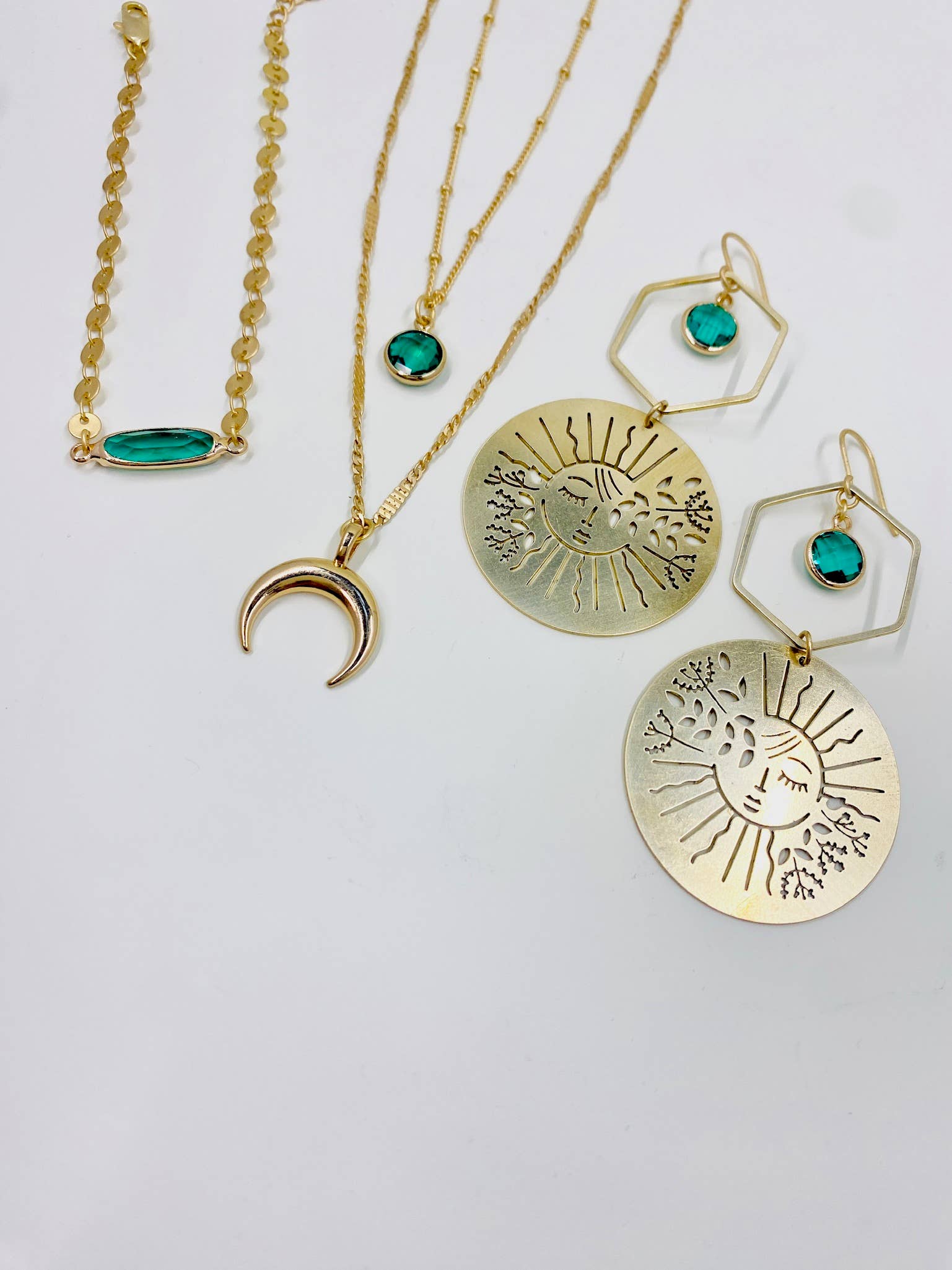 Sweet and splendid This sweet piece features a dainty, faceted round glass gem in a enchanting sea grean hue. Perfect for layering or on its own, this piece possesses versatility and loveliness that belongs in your ever expanding jewelry collection.