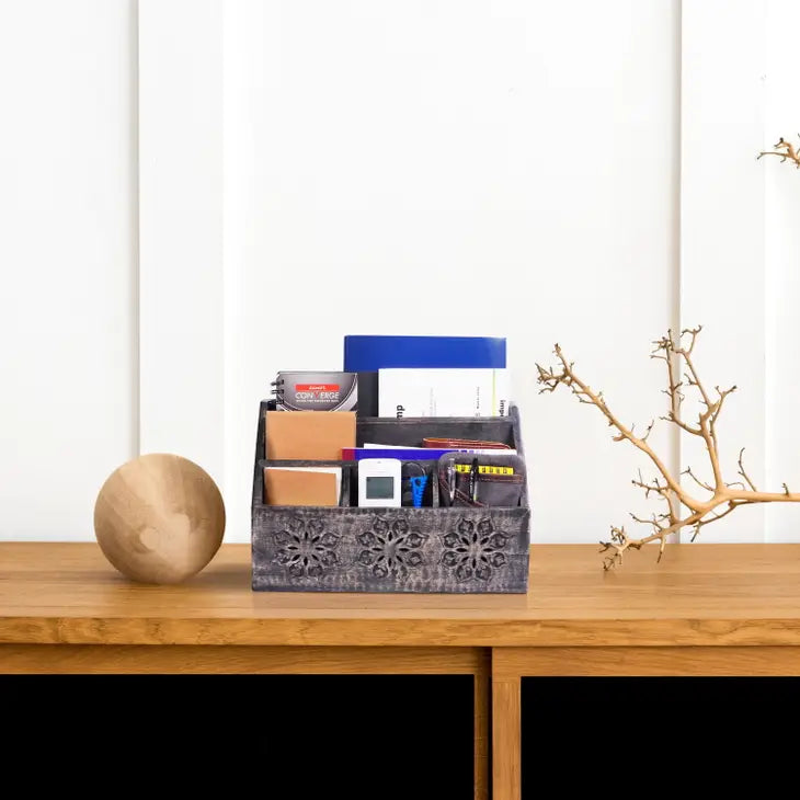 Add style and utility to entertaining with Mela Artisans decorative desk organizer. This wood organizer owns a unique design and flexibility that gives your home a brand new way to organize stuff. The wood organizer provides a streamlined and organized kitchen, cabinets, desks, countertops, vanity table, and more! The 5 compartments offer generous space to keep your items separated and always within easy reach. Compactly sized, this caddy kitchen utensil storage is super portable that you can move it from place to place.