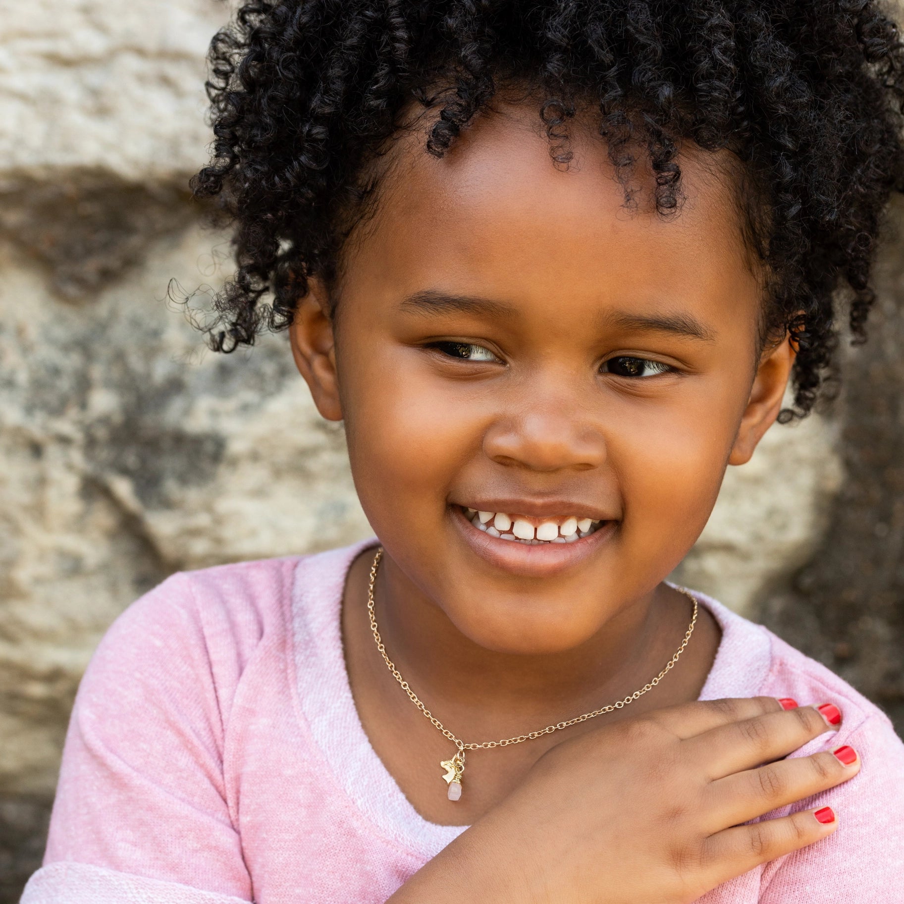A dainty necklace featuring an aqua quartz bead and shooting star charm for the little star in your life.