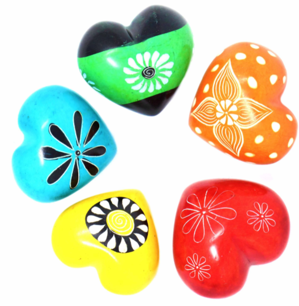 Hand-carved from a single piece of Kisii soapstone by African artisans, this small soapstone hearts are brightly painted and a great keepsake reminder to share the love with your family and friends.
