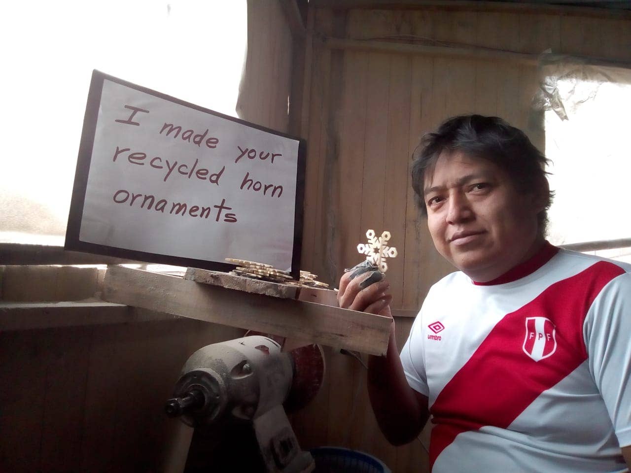 This eco-friendly handmade ornament is made from natural discarded and recycled bull horn crafted by Peruvian artisans. We designed with the artisan based on their technique, tradition, and tools experience.