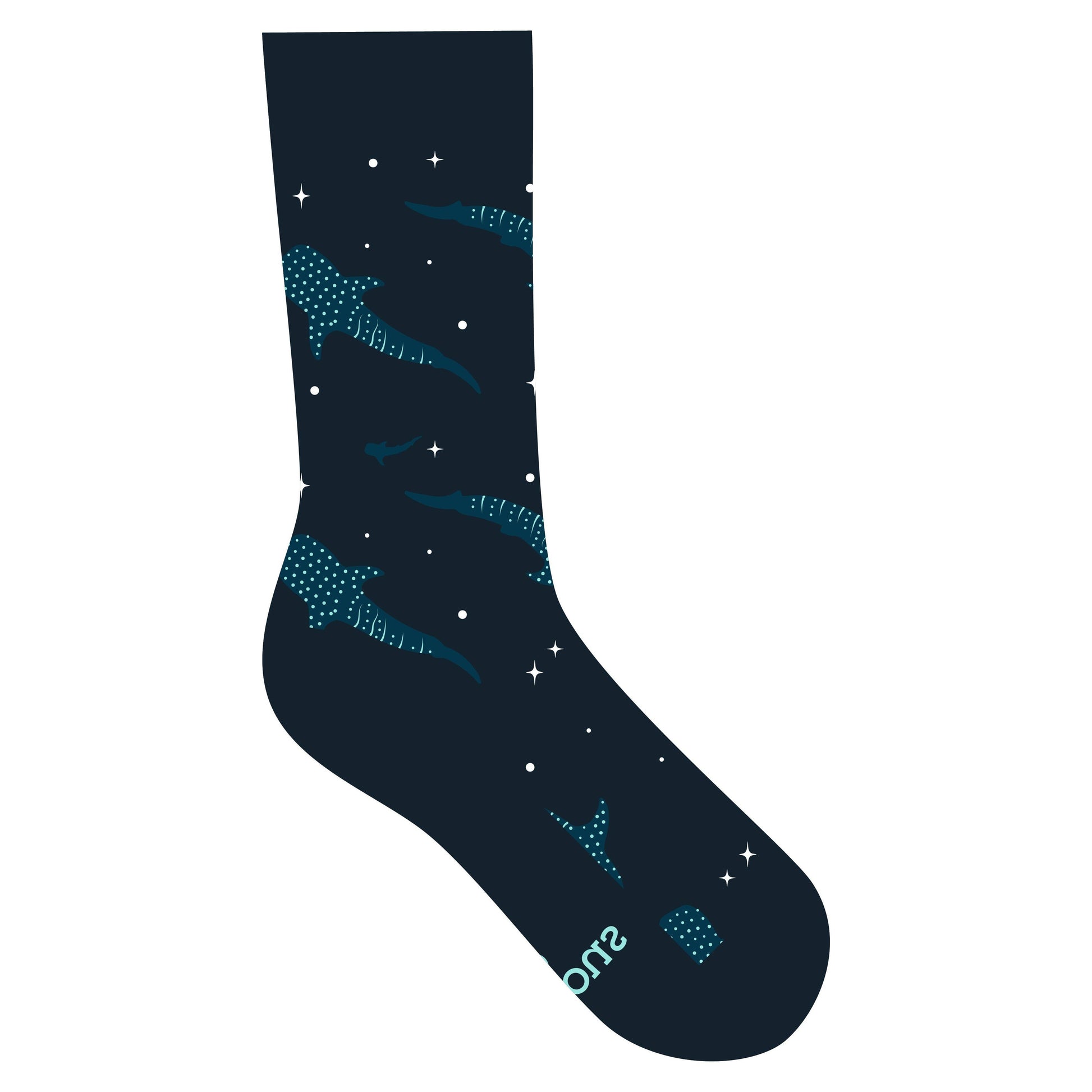 Take the plunge with a pair giving love to a big fish with big style: the whale shark! Inspired by the ocean’s gentle giants, this navy pair makes colossal waves for whale shark conservation.