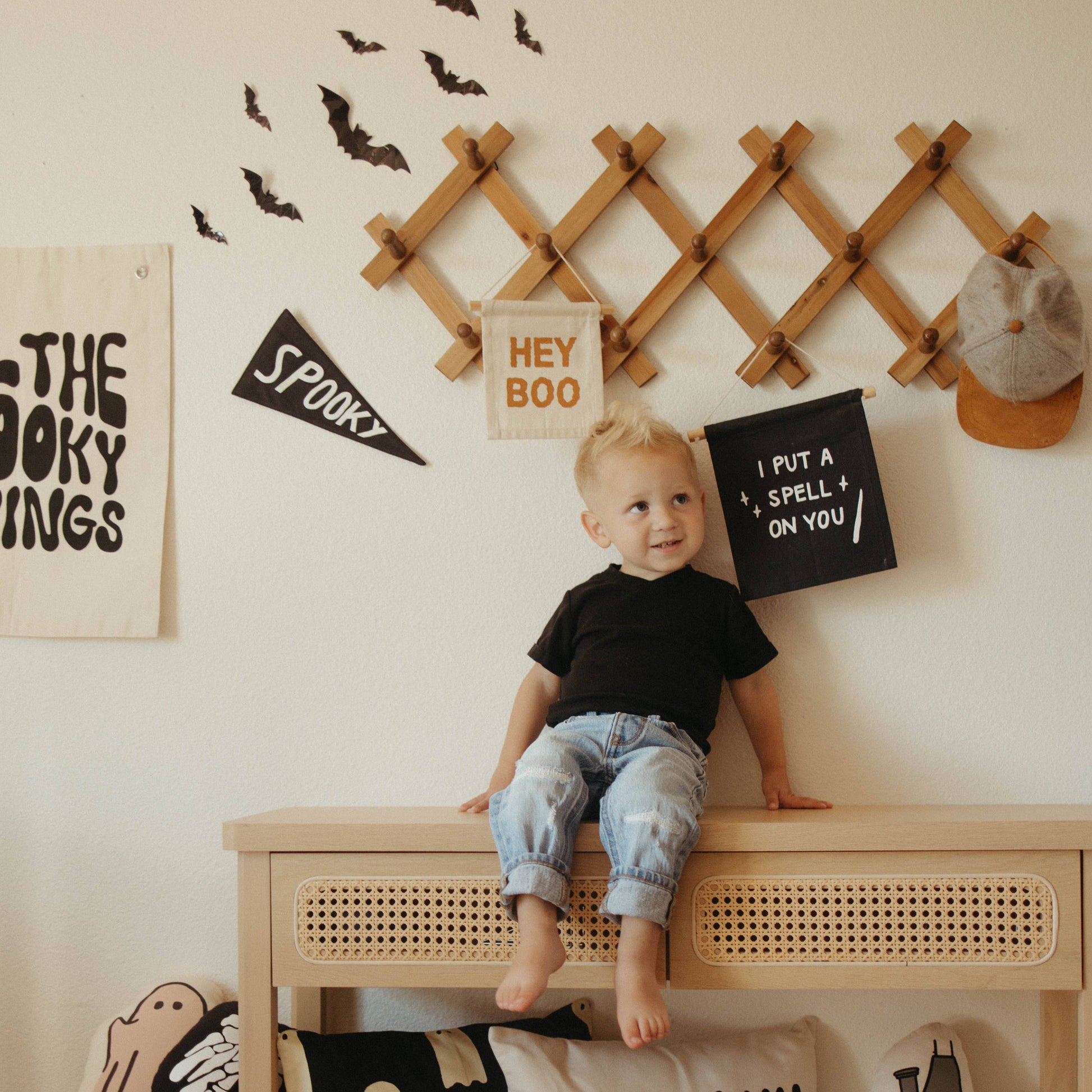 This pennant is perfect for Halloween or all year! It is sewn and screen printed by hand on black canvas by empowered Kenyan artisans.