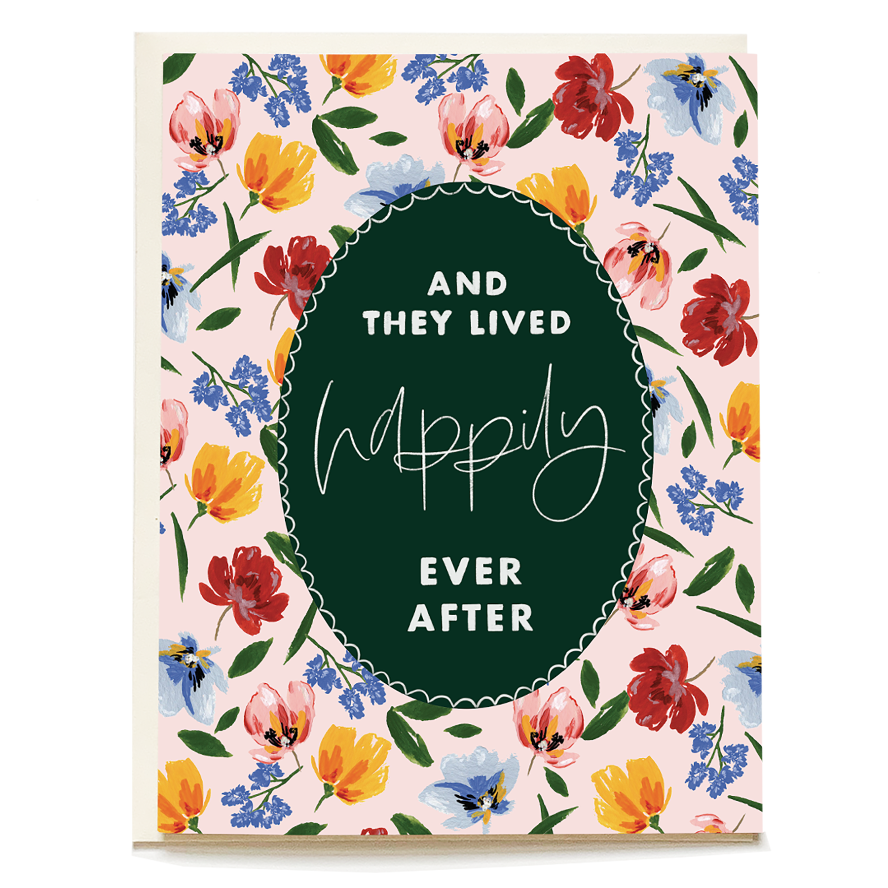 Storybook Ending Wedding Greeting Card - floral pattern - traditional Sentiment: "And they lived happily ever after"