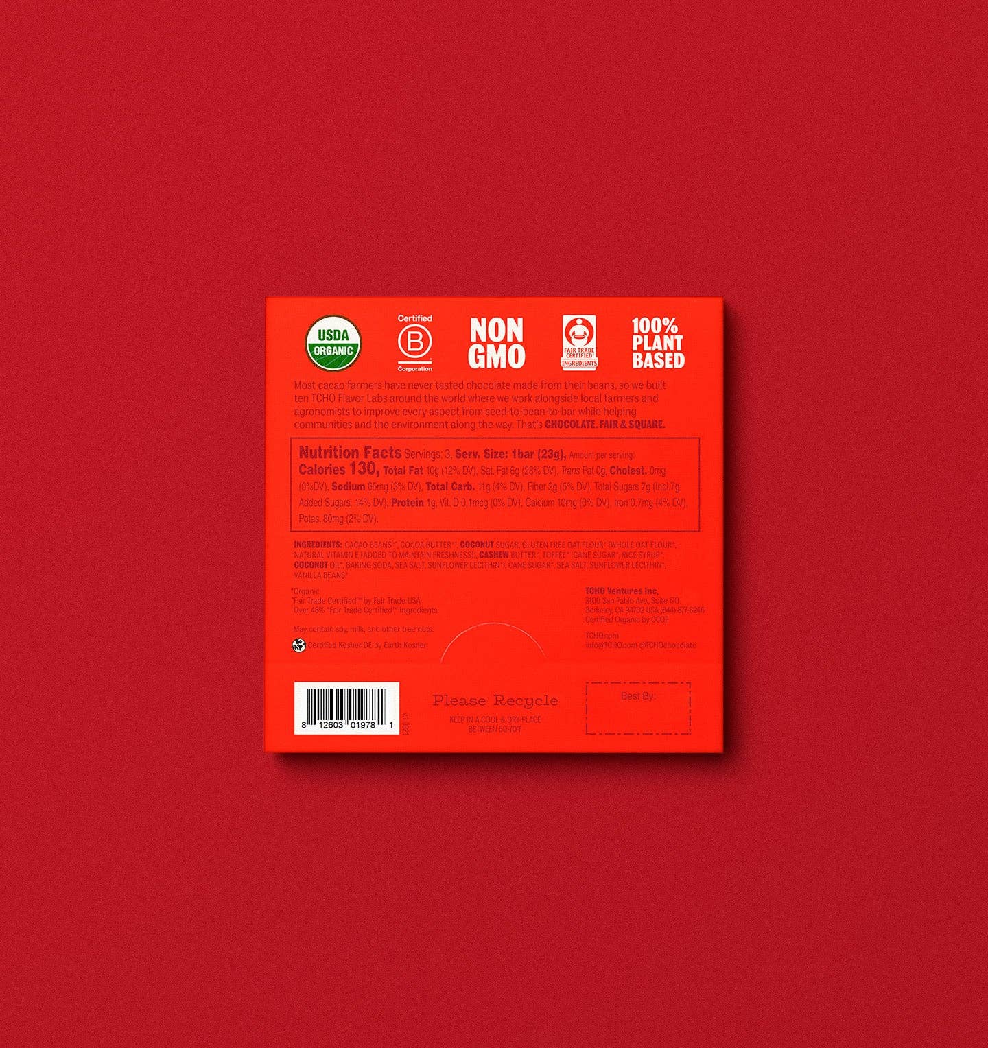 A creamy plant-based oat milk chocolate mixed with bits of vegan toffee and flakes of sea salt. Caramelly and perfectly salty.