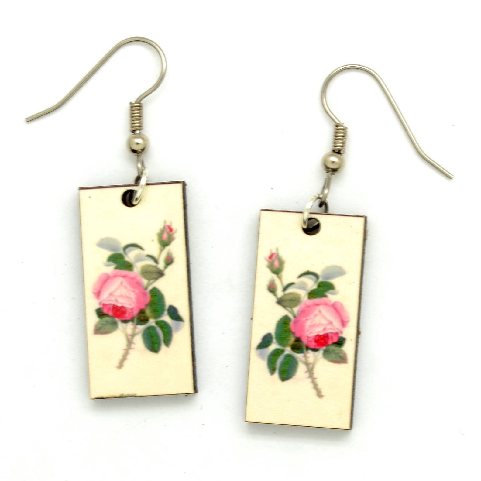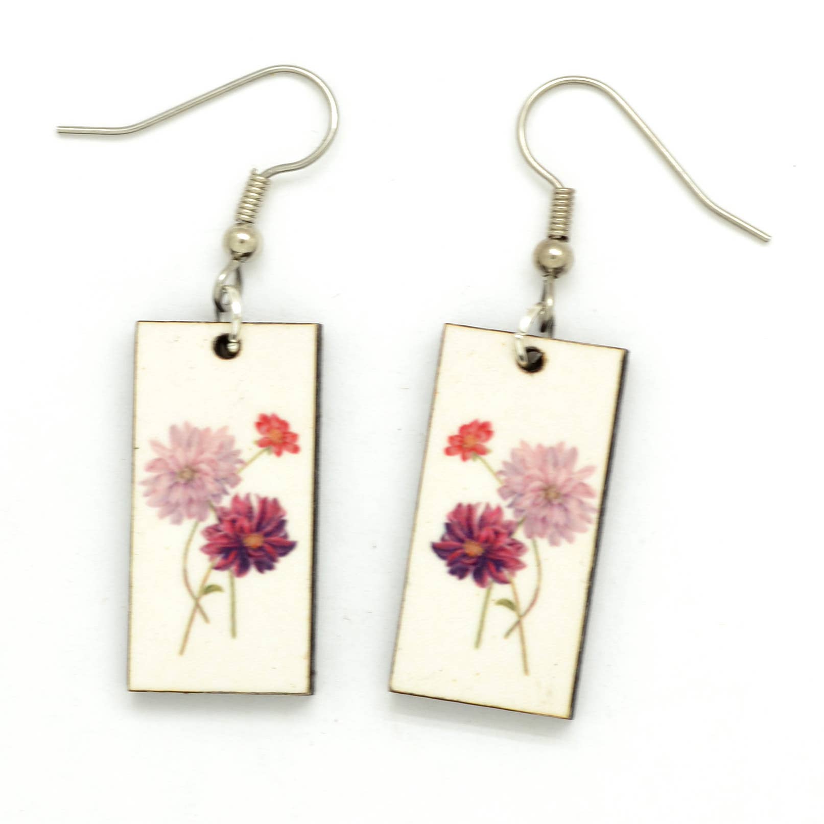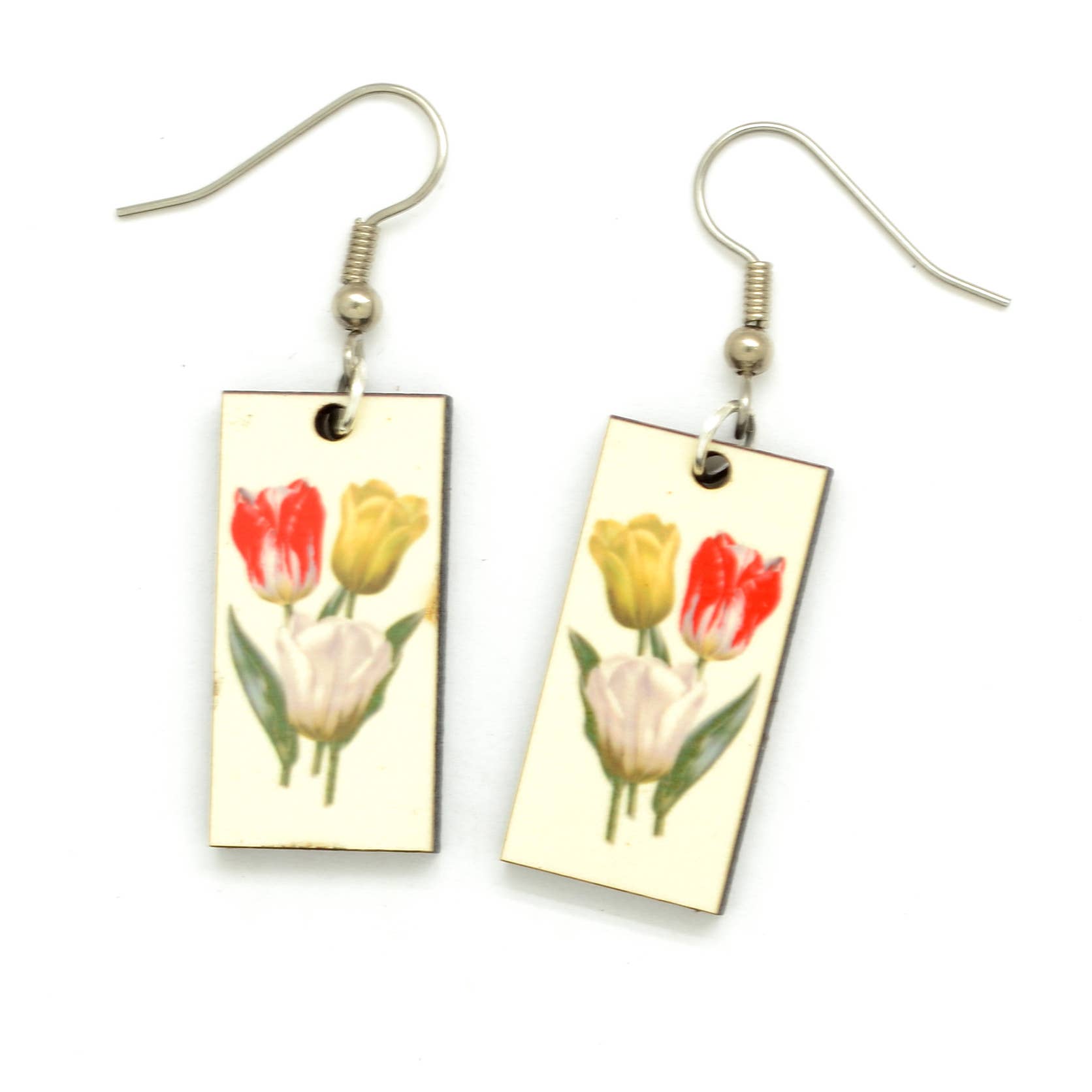 Bring the garden to your ears. We've scoured oodles of vintage illustrations to piece together this collection of botanical images. With this option, we will ship you an assortment. Our laser cut earrings are created with wood board made from recycled eucalyptus. A white polyurethane coating fixes the images to the wood.