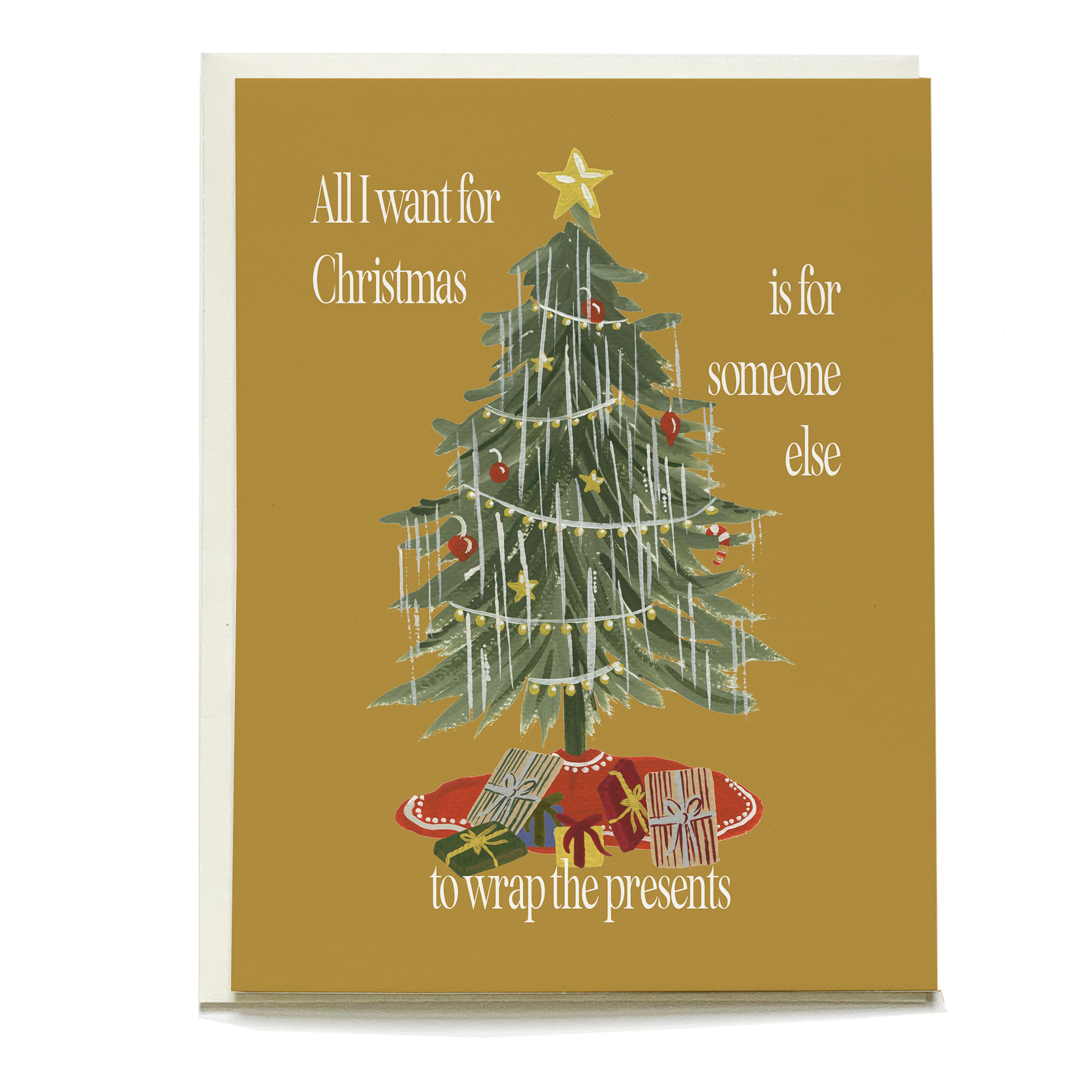 Vintage Tree Holiday Greeting Card with Sentiment: "All I want for Christmas is for someone else to wrap the presents"