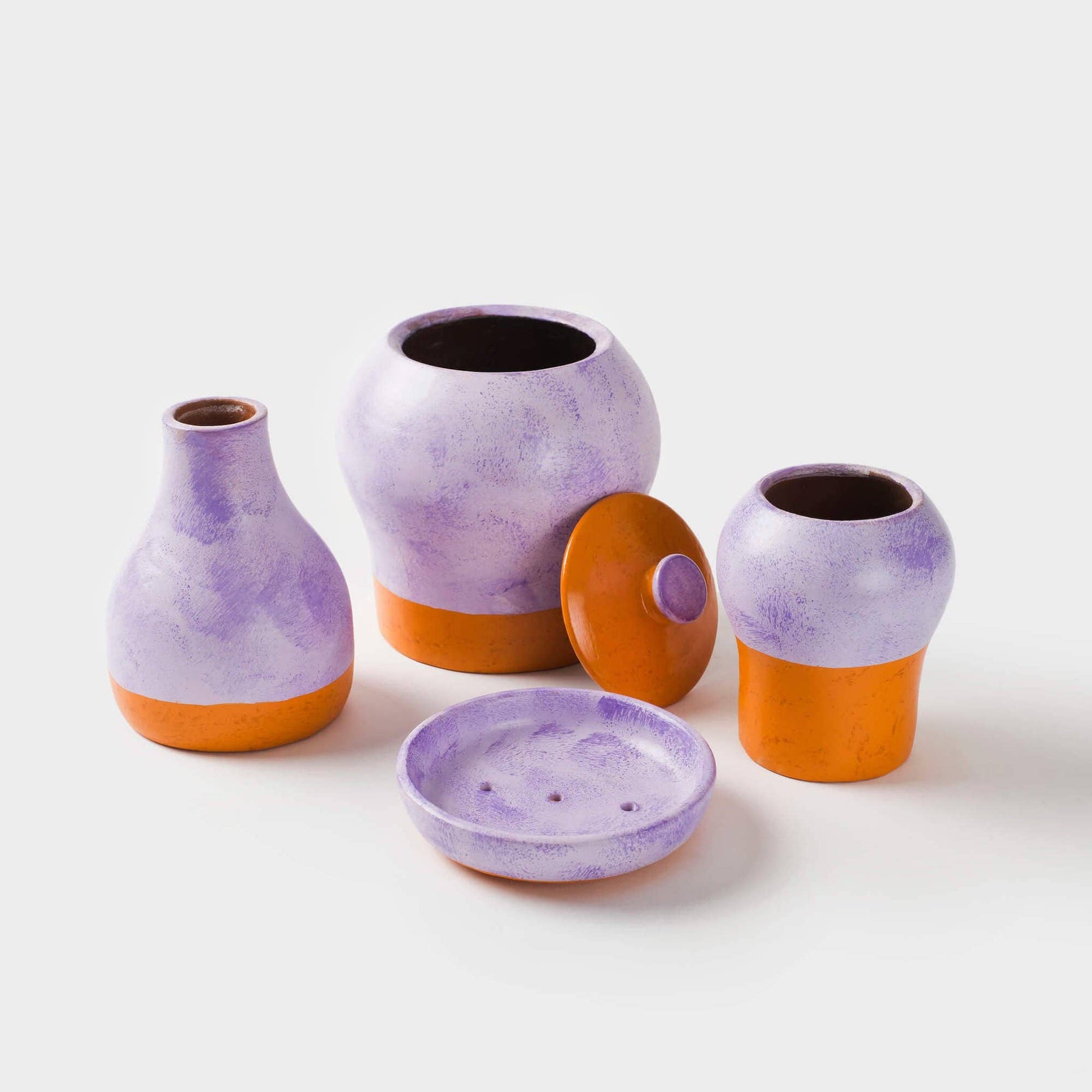 This lavender soap dish has a washed finish and is hand made from terracotta to create a clean and luxurious look. Each piece is handmade and hand finished by fair trade artisans in India, ready for your favorite bar of soap.