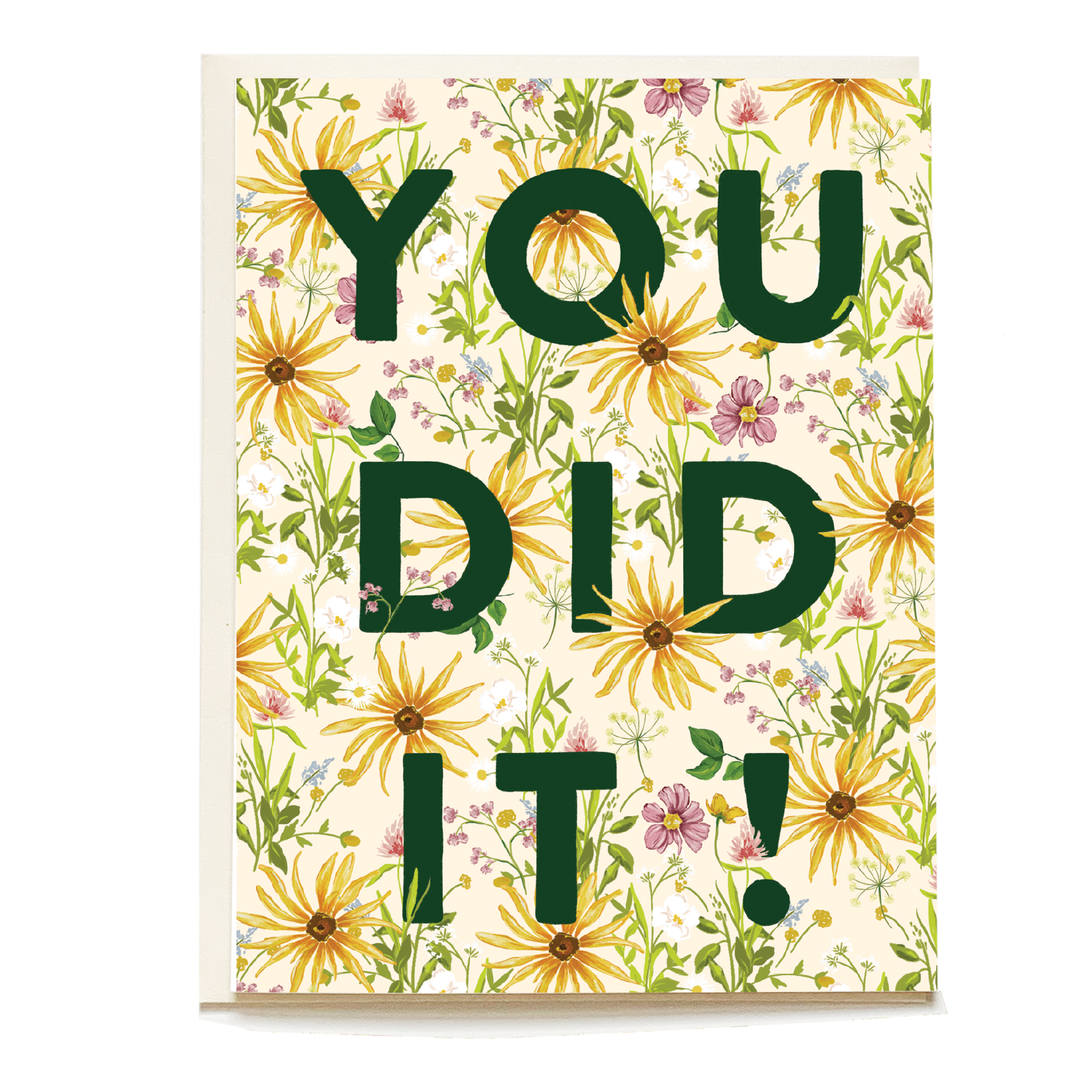 Wildflower Congrats Greeting Card - springtime floral pattern - bright and cheerful Sentiment: "You did it!" Card is printed on 100% PC Recycled Paper, made with wind power in the USA Size: A2 (4.25x5.5), blank inside Matching Envelope